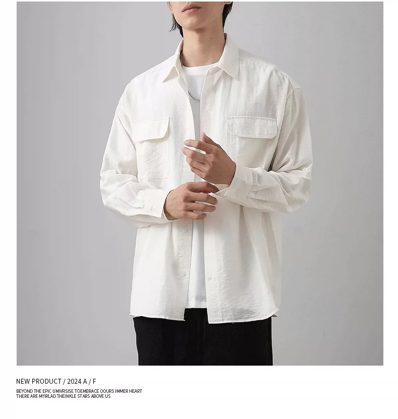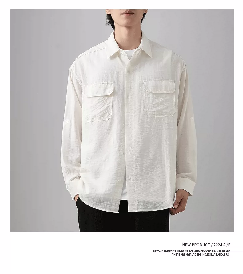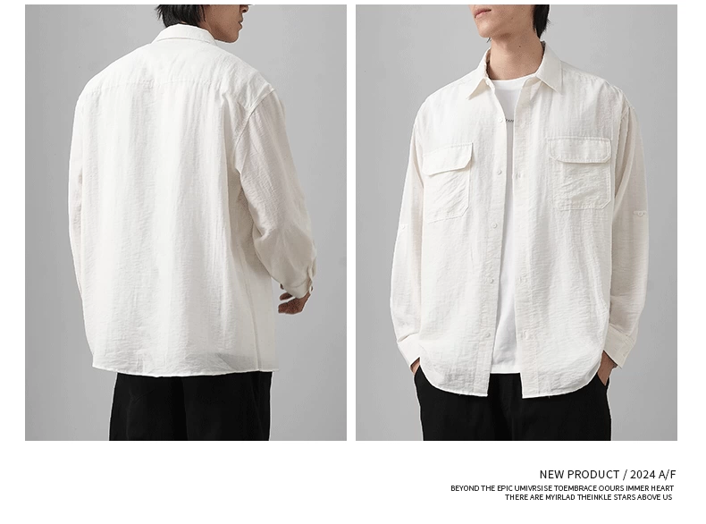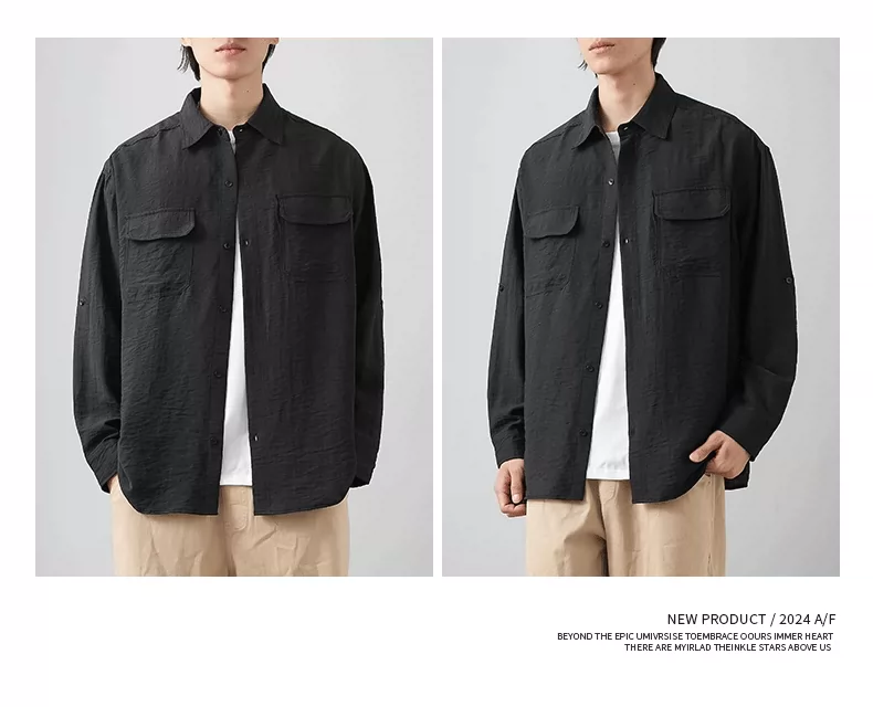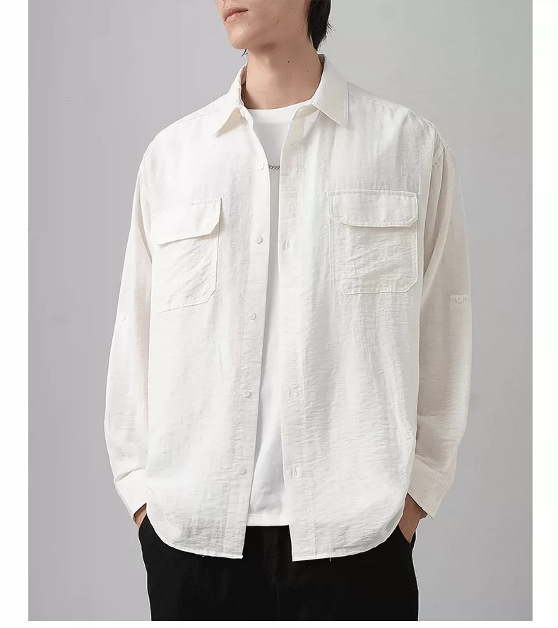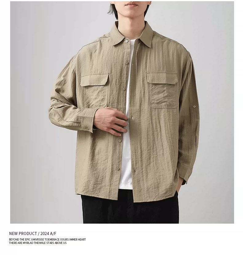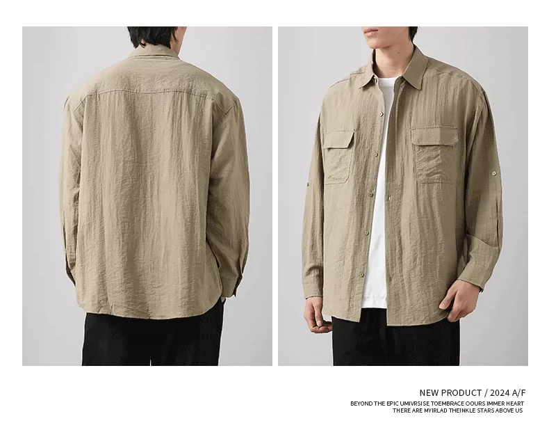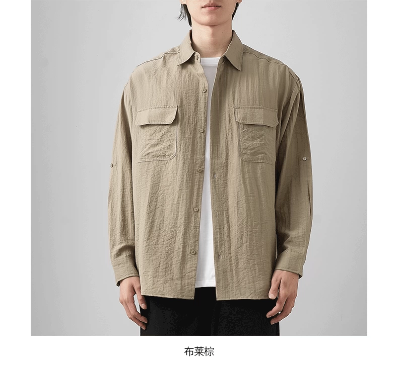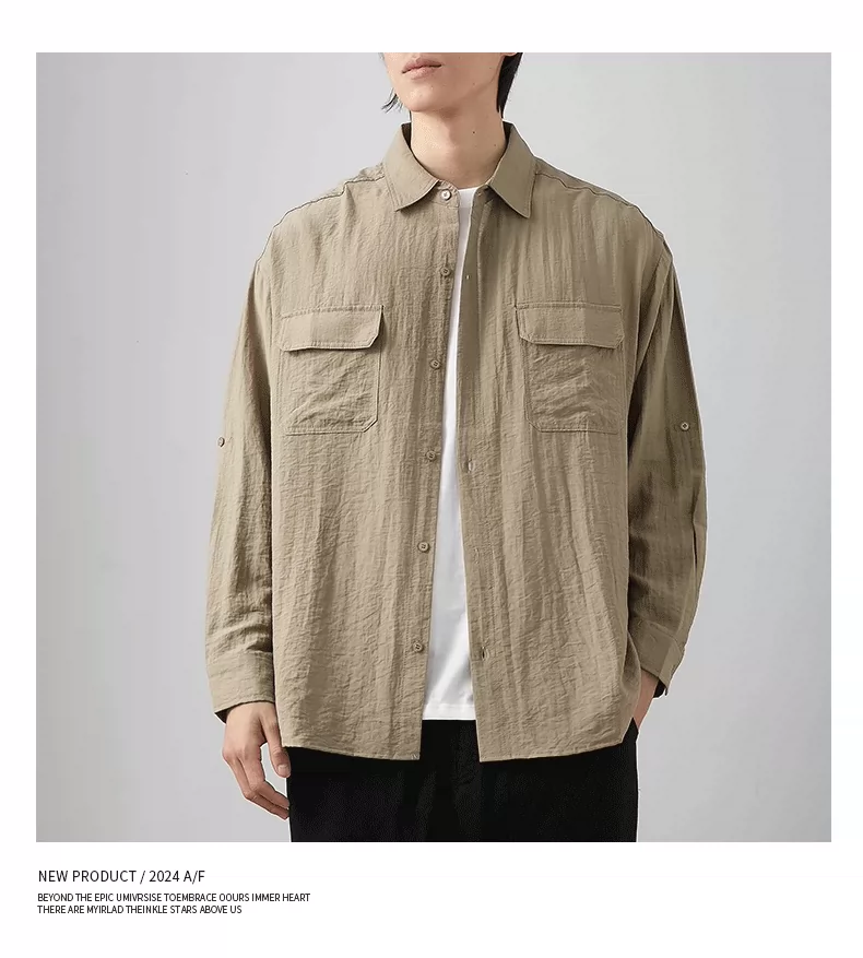 - OMZM nhẹ công sở áo sơ mi vải lanh nam dài tay mùa thu áo sơ mi cotton-linen mỏng phong cách Nhật Bản áo khoác dáng rộng giản dị