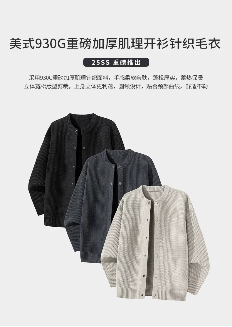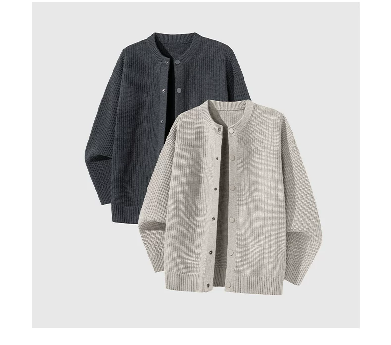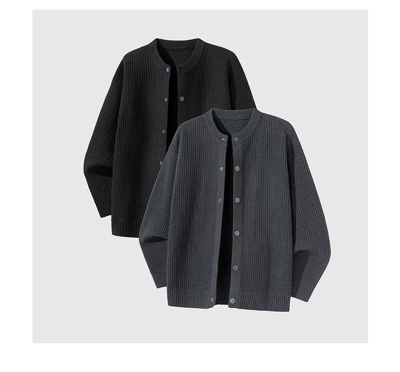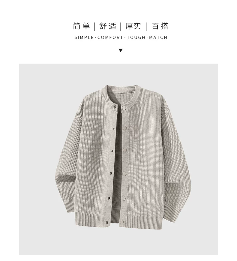 - OMZM retro dệt kim cardigan nam mùa thu đông dày dặn áo len ấm áp phong cách Nhật Bản lười biếng phong cách cổ tròn áo khoác
