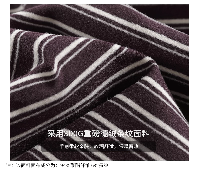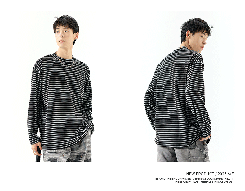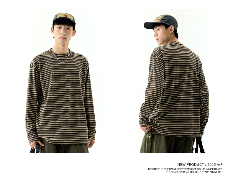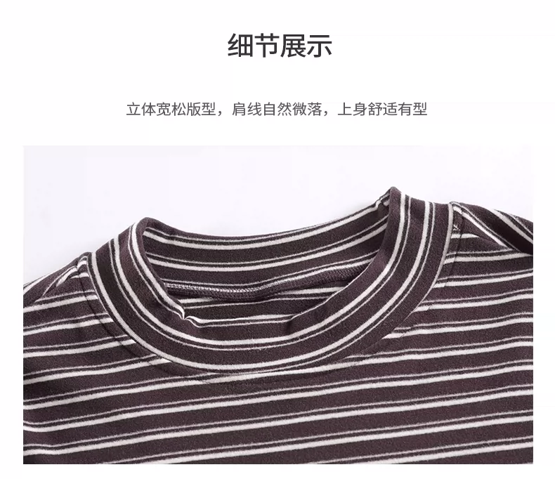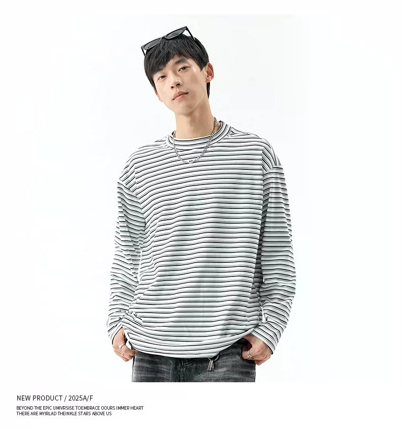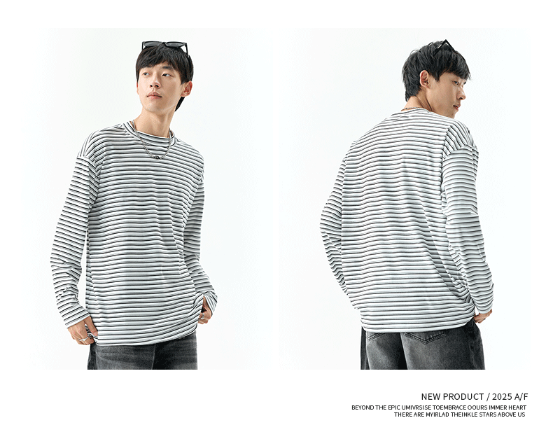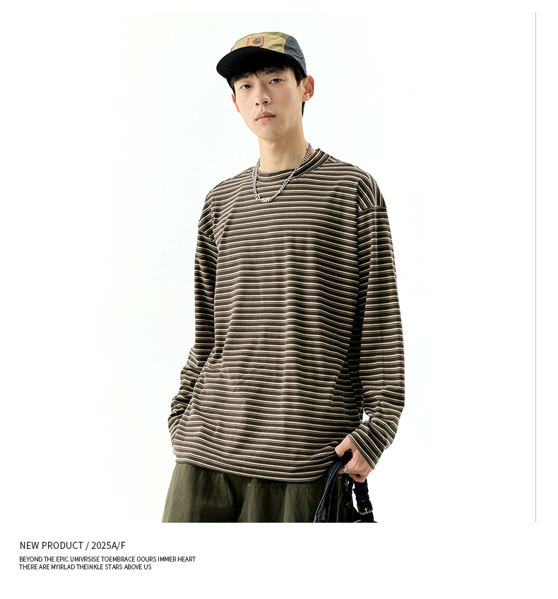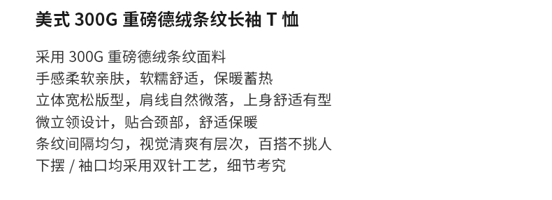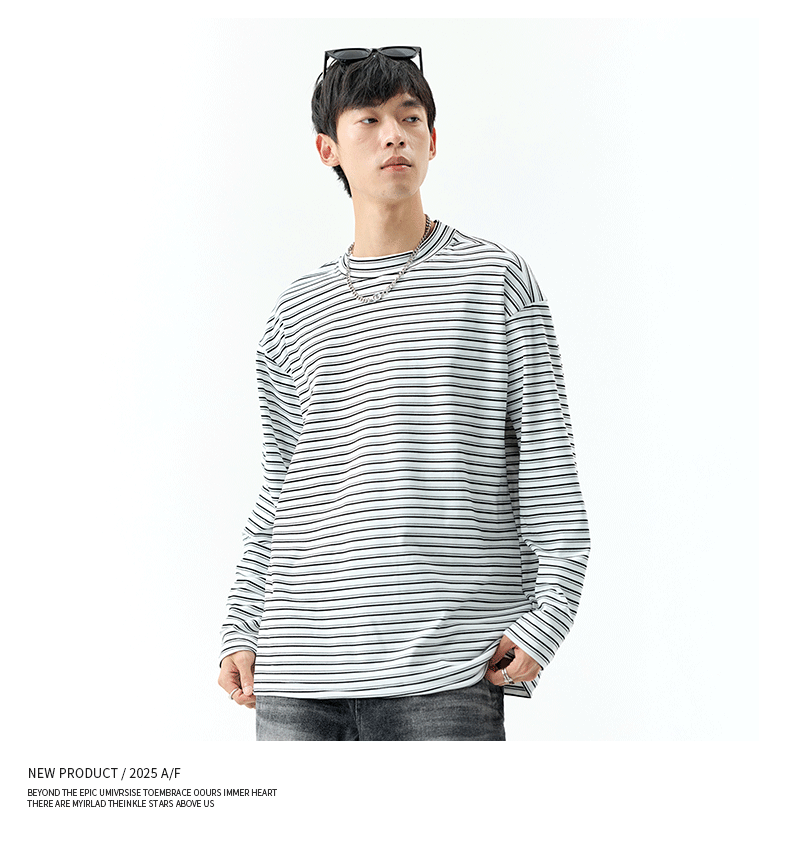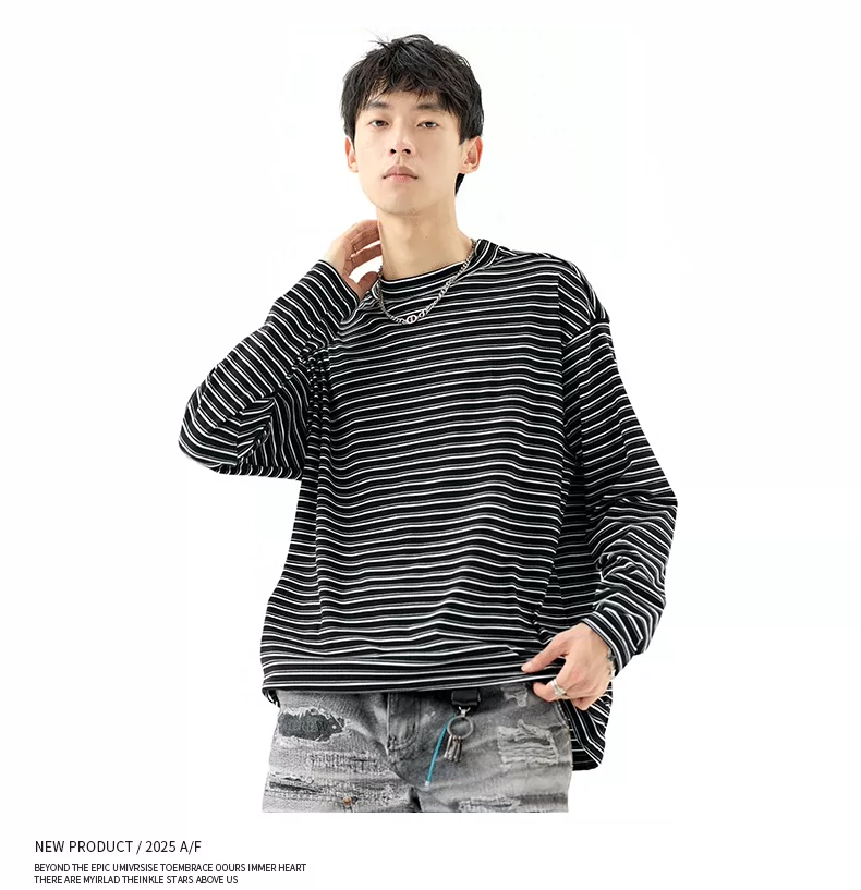 - OMZM300G hạng nặng Đức nhung lớp nền áo thun nam mùa thu cổ cao nửa cổ áo thun dài tay sọc cổ điển Mỹ