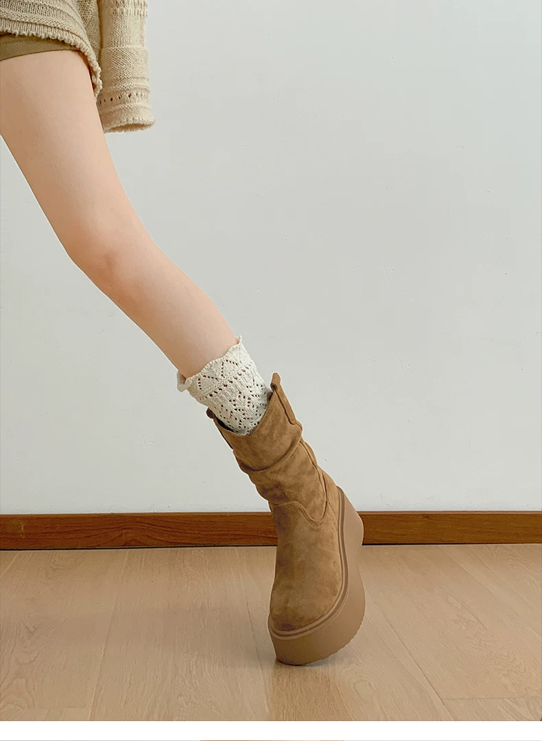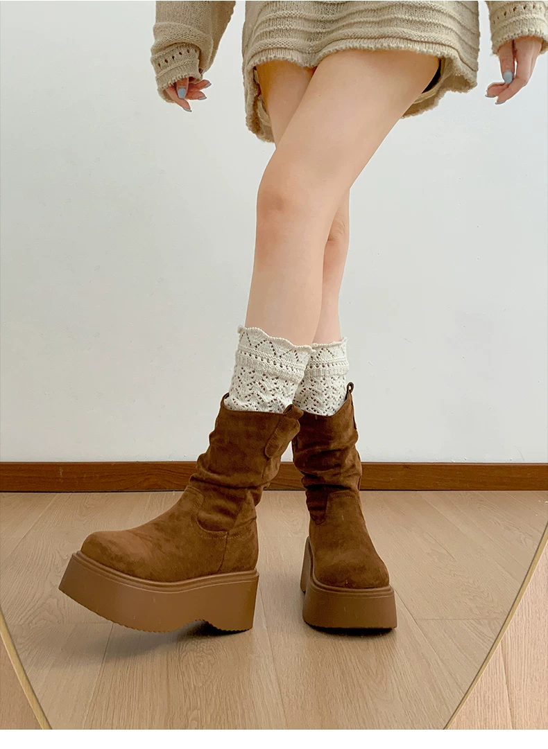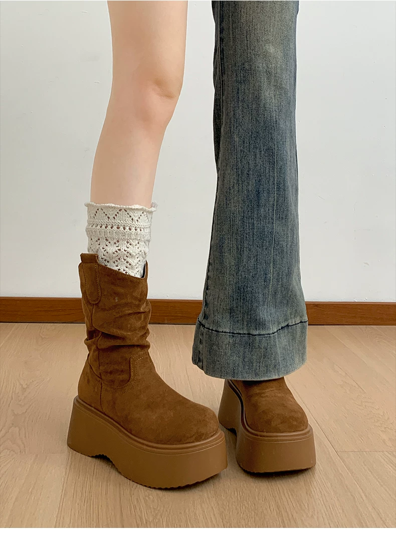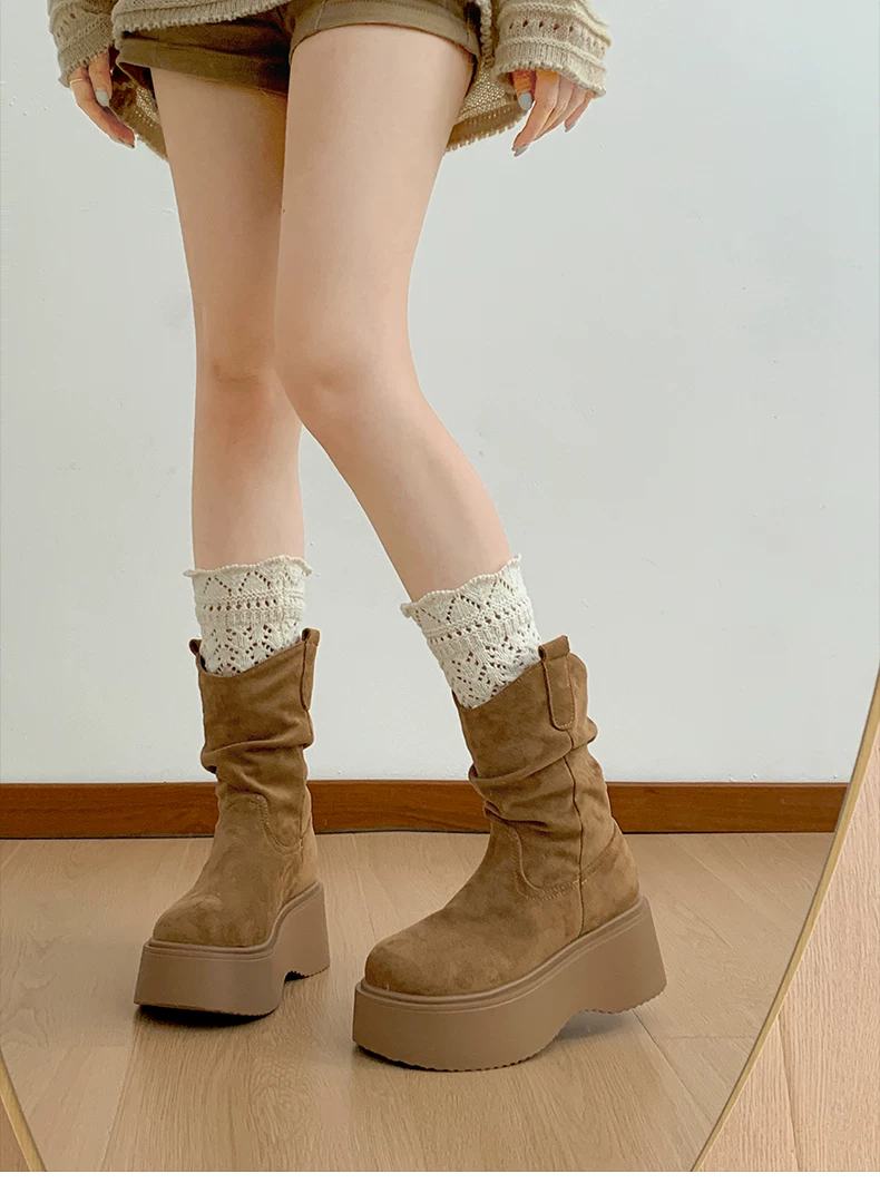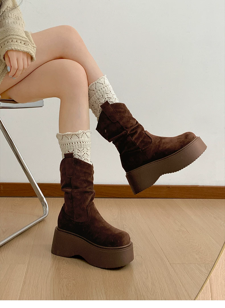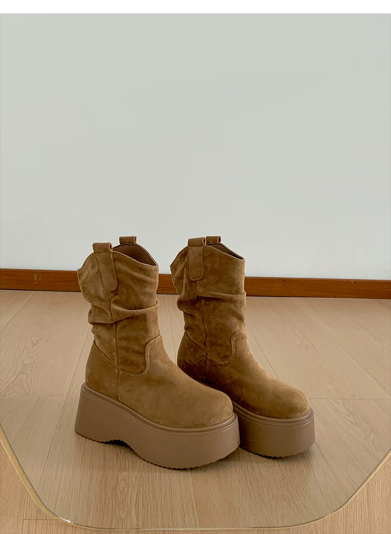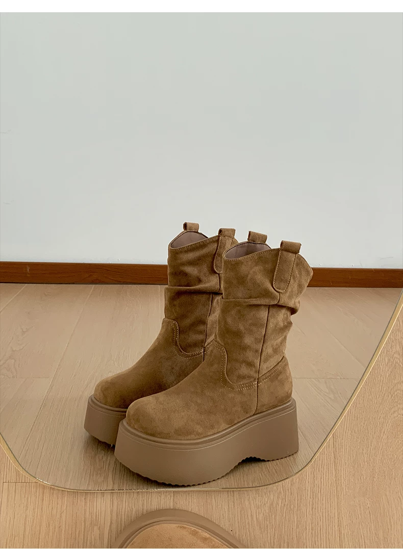 - Phía Nam ở miền Nam: Giày bốt đế dày màu nâu cổ điển dành cho nữ, Giày bốt cao đến giữa bắp chân, Giày bốt cưỡi ngựa tăng chiều cao kiểu dáng thon gọn mới mùa thu/đông 2025.