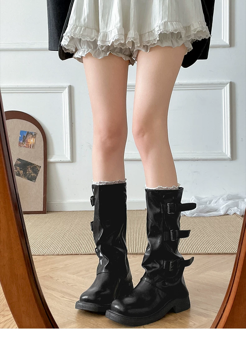 - Phía Nam ở miền Nam: Giày bốt Martin đế dày kiểu Anh màu đen dành cho nữ, giày bốt cưỡi ngựa giảm béo và tăng chiều cao mới mùa thu đông 2025.