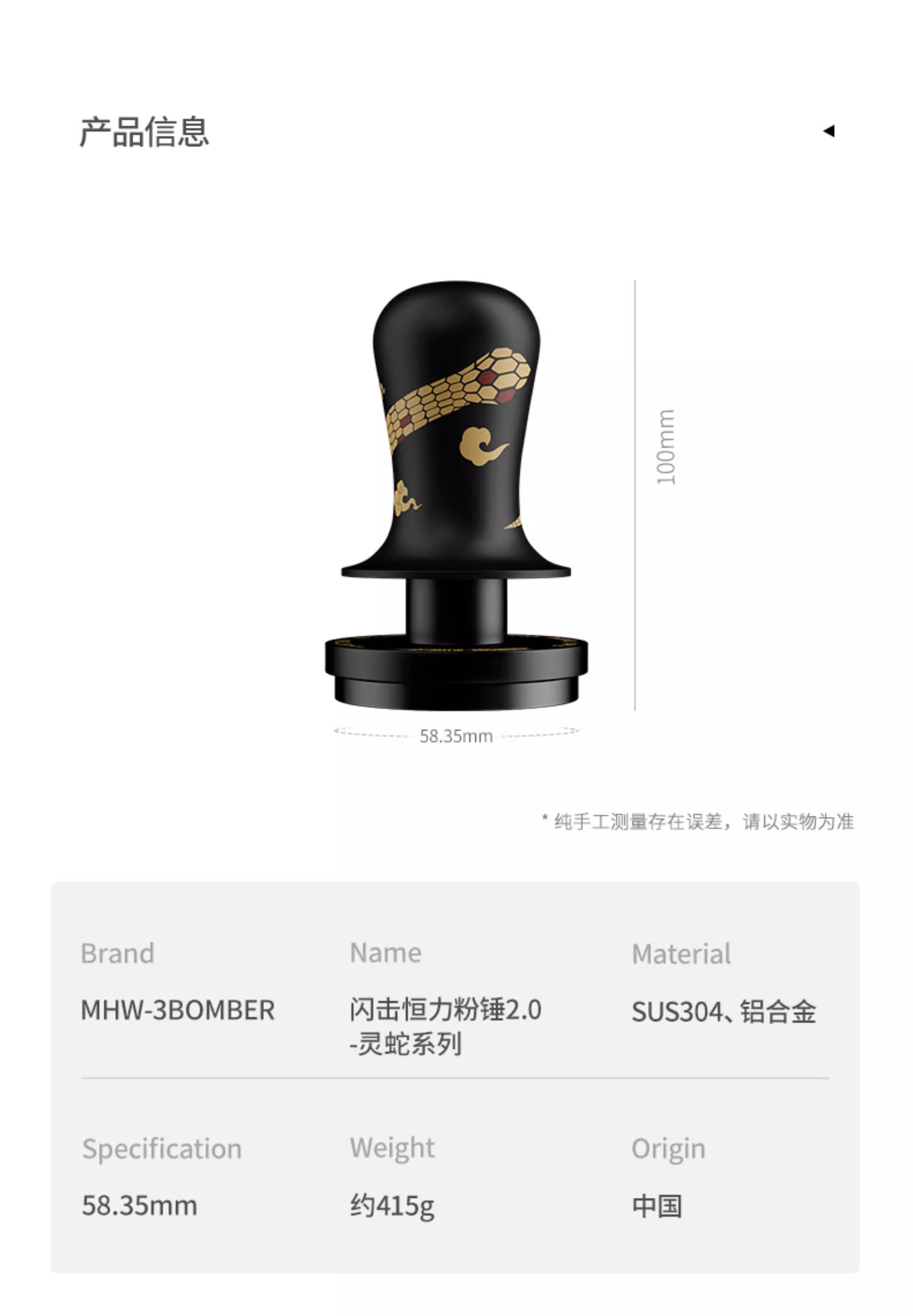 - Phiên bản giới hạn Năm Rắn | Máy ép cà phê Bomber MHW Blitz Constant Pressure Tamper kiểu Ý, chống lệch áp lực 58mm