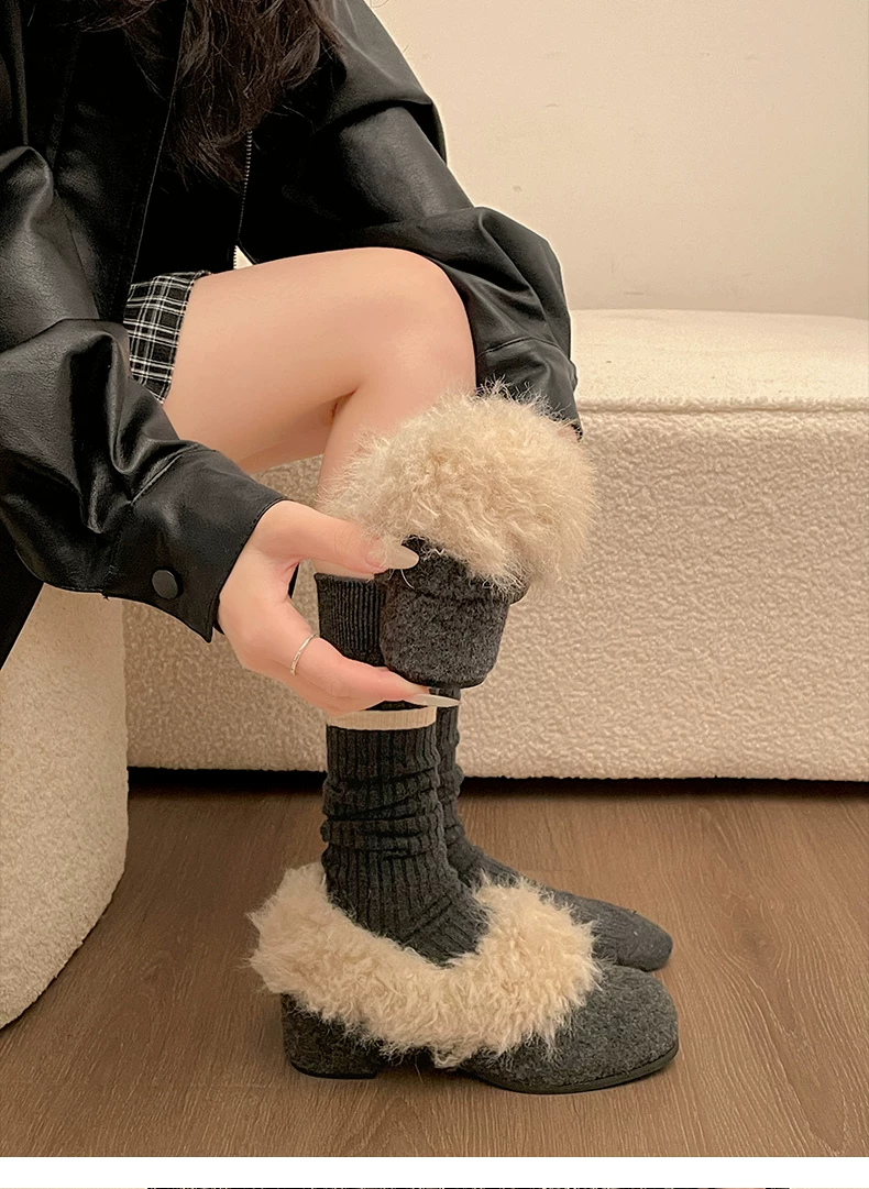 - Phổ biến ở miền Nam, giày lông dày đế dày lót lông cừu dành cho nữ, kiểu dáng mùa đông mới 2025, tăng chiều cao, ấm áp, giày cotton đi ngoài trời.