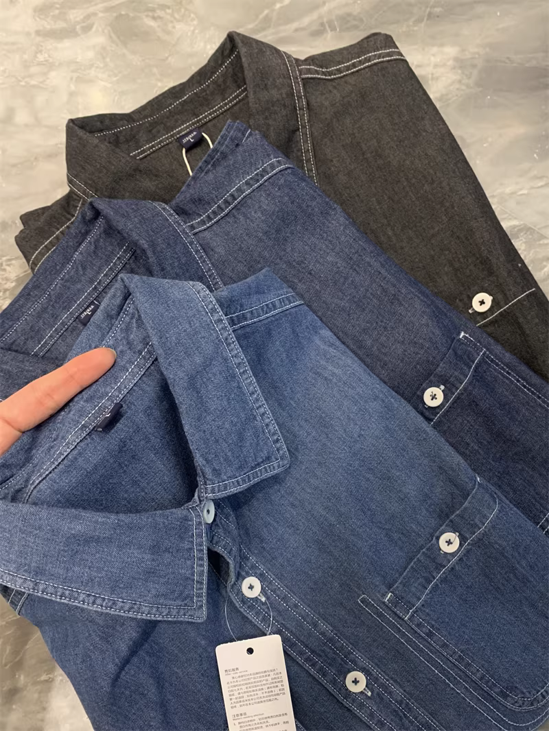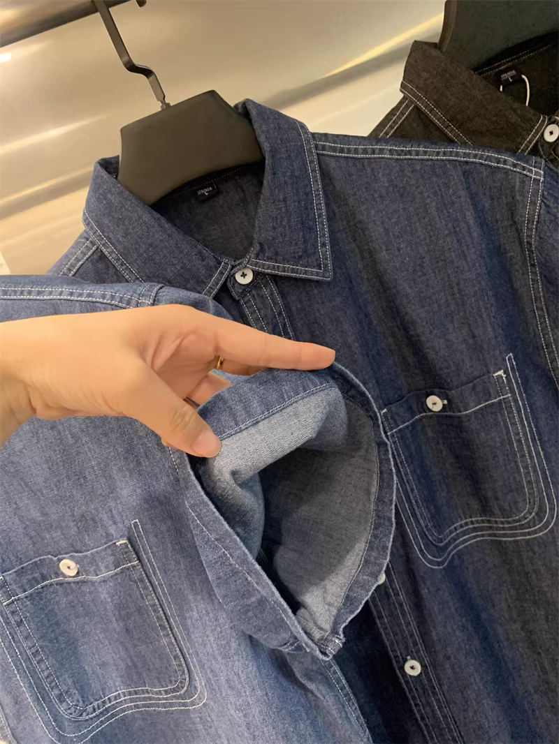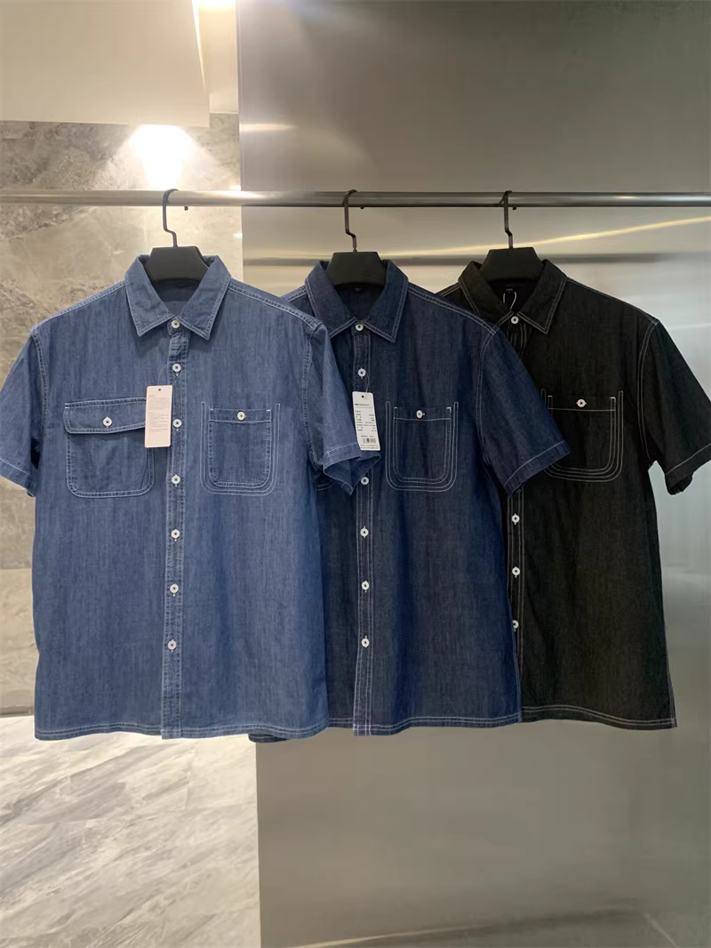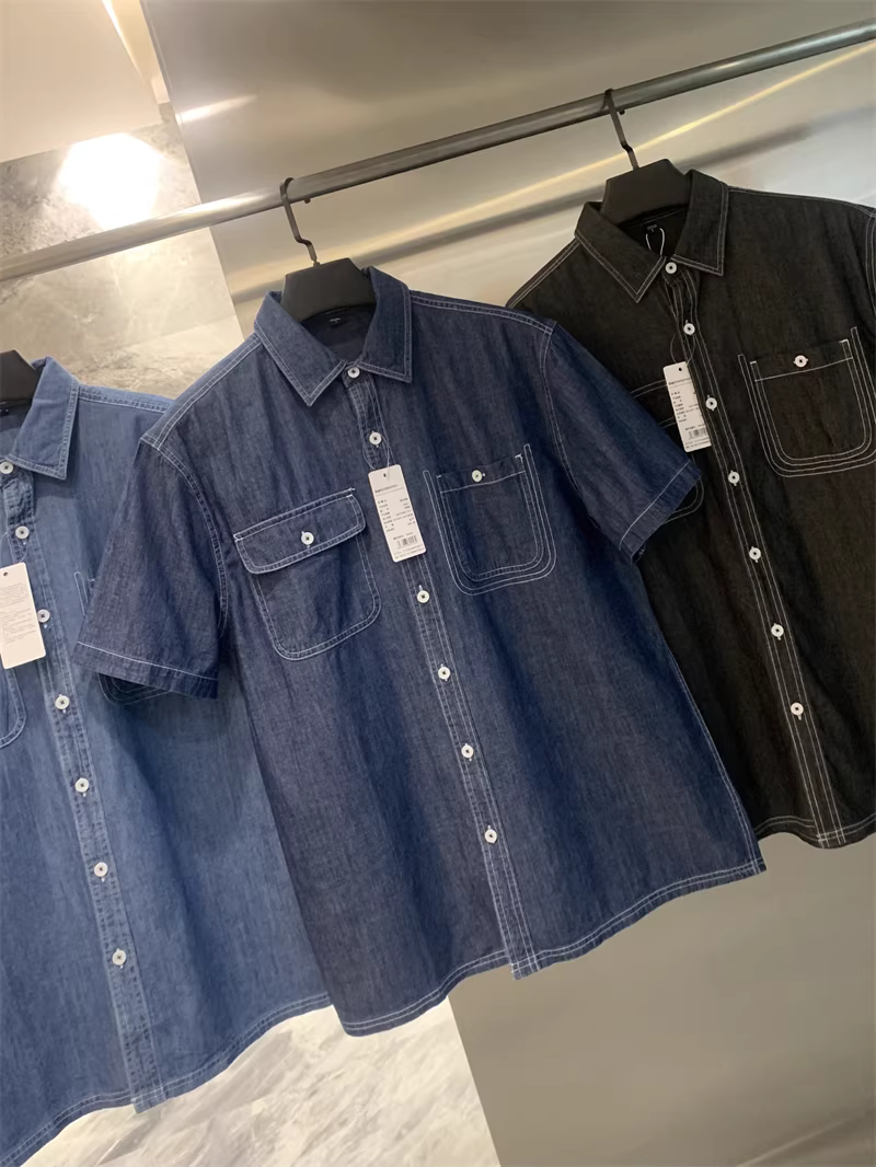 - Phong cách cổ điển Don Quixote! Thiết kế ba chiều! Áo sơ mi denim ngắn tay mùa hè dành cho nam giới đang thịnh hành.