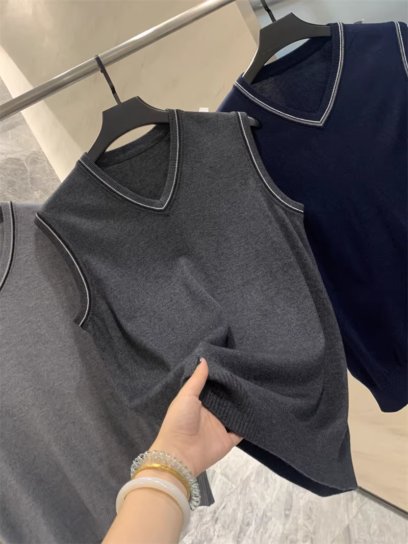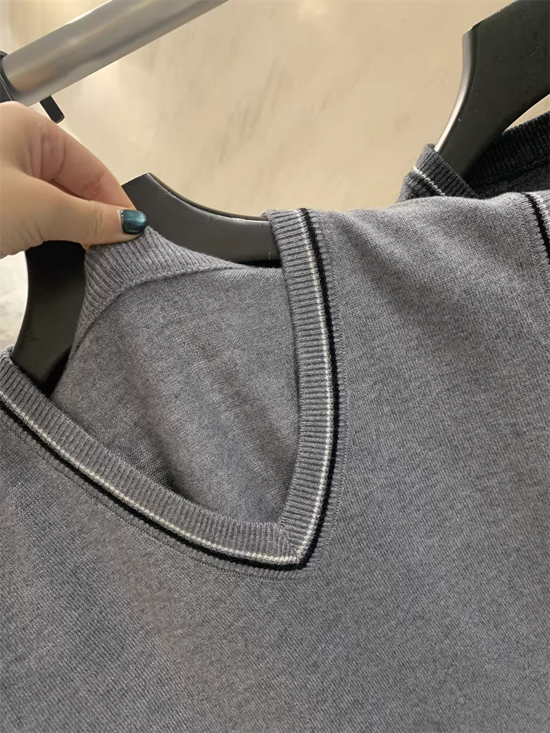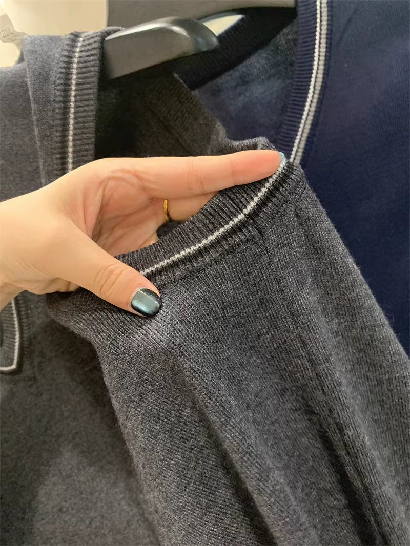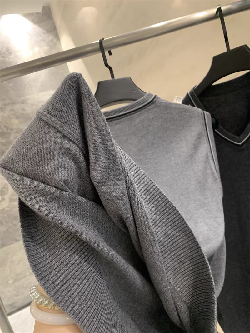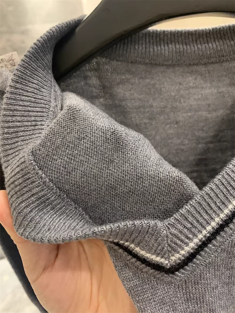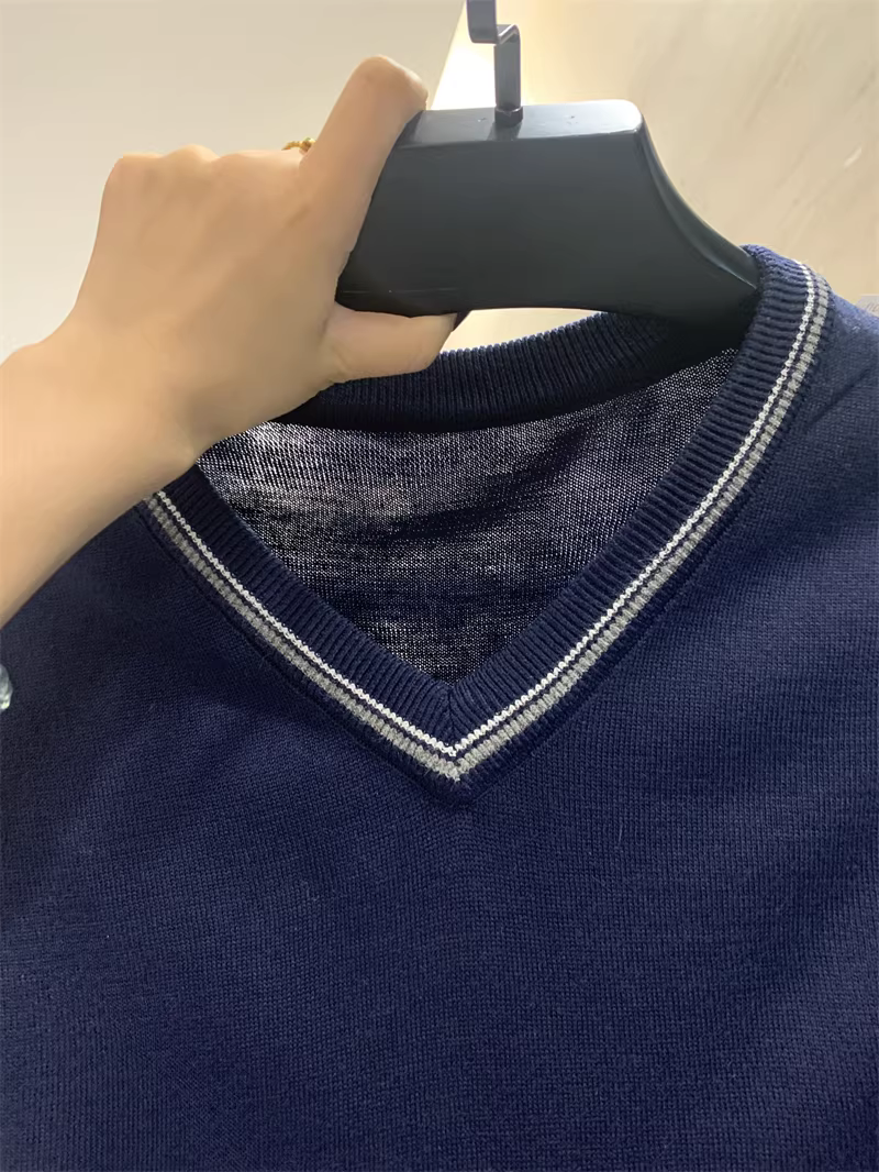 - Phong cách Don Quixote bất hủ! Chất liệu len pha! Áo len nam cổ V phối màu mùa thu đông.