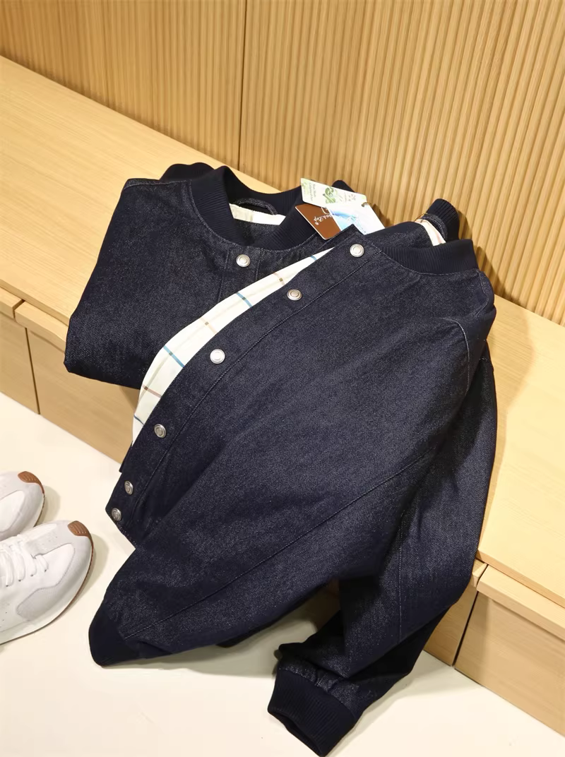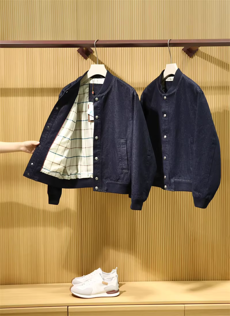 - Phong cách Don Quixote! Quần jean màu chàm đã qua xử lý! Áo khoác denim unisex mùa thu đông.