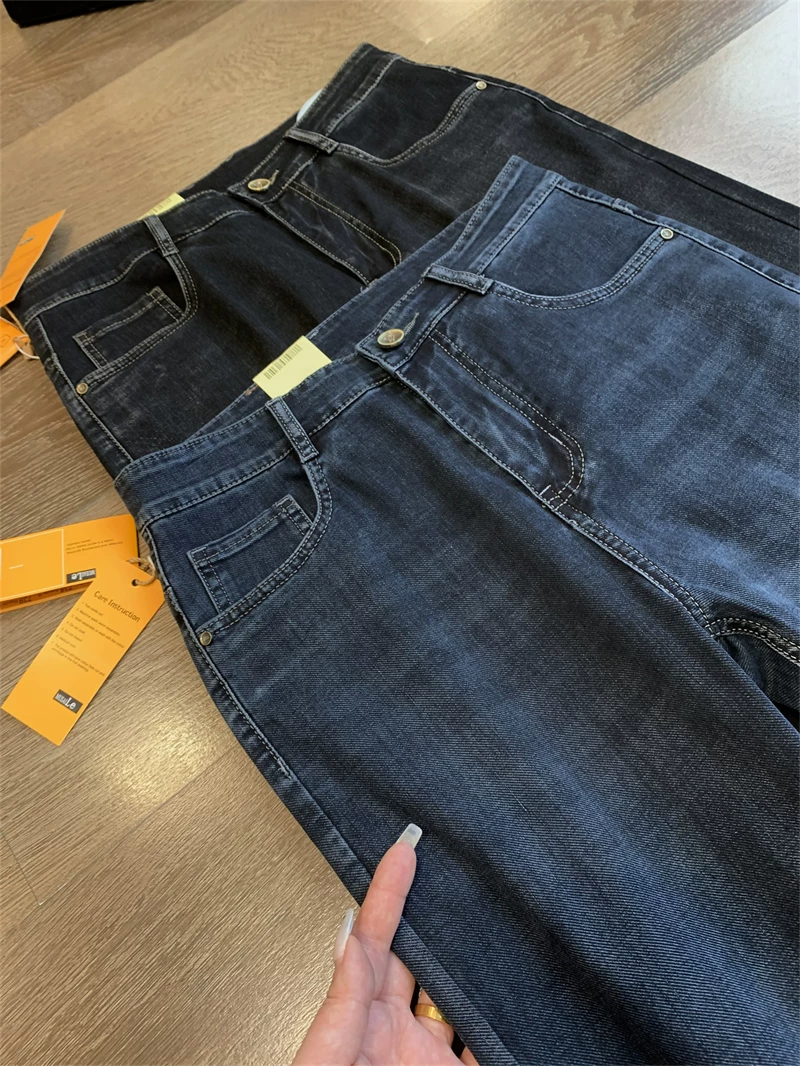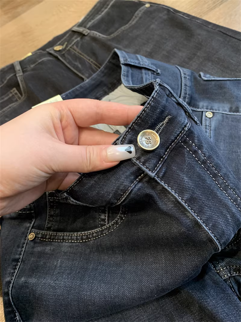 Phong cách Don Quixote thật tuyệt vời! Co giãn và thoải mái! Quần jean nam dáng thẳng màu trơn phong cách thường ngày mùa xuân.