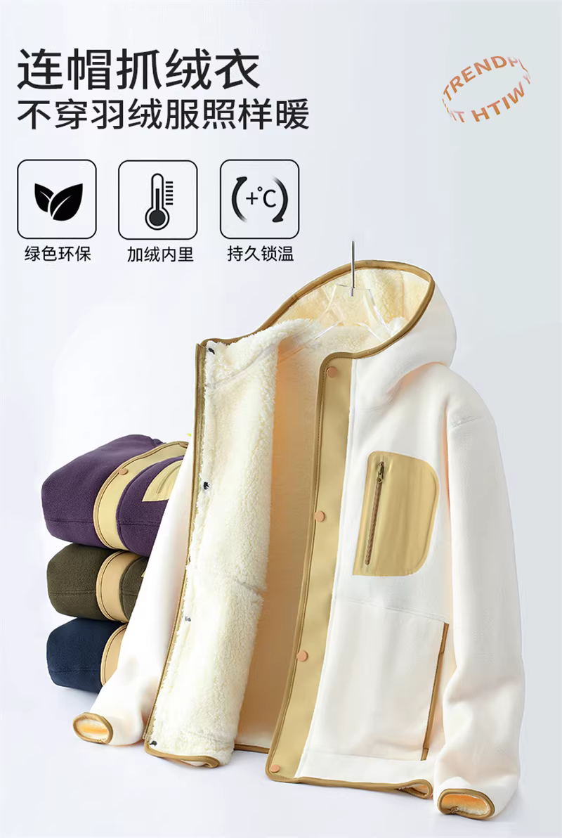 Phong cách Don Quixote, unisex! Chống lạnh và ấm áp! Áo khoác có mũ trùm đầu, lót lông cừu, dày dặn, viền chắc chắn, hợp thời trang, thích hợp cho mùa thu đông.