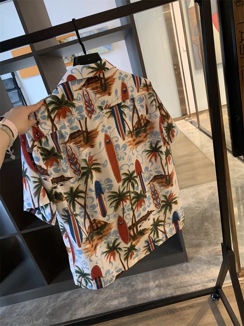 - Phong cách nghỉ dưỡng Hawaii của Don Quixote! Thiết kế cổ Cuba, áo sơ mi nam mùa hè in họa tiết, kiểu dáng thời trang ngắn tay đang thịnh hành