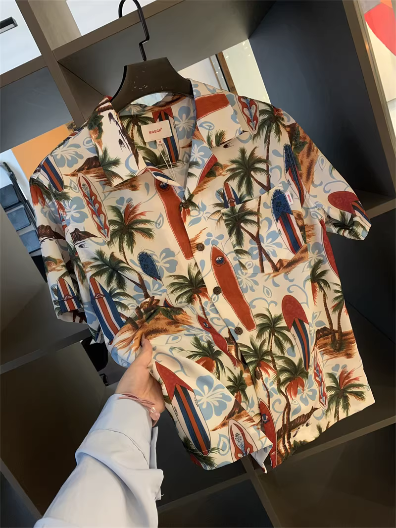 Phong cách nghỉ dưỡng Hawaii của Don Quixote! Thiết kế cổ Cuba, áo sơ mi nam mùa hè in họa tiết, kiểu dáng thời trang ngắn tay đang thịnh hành