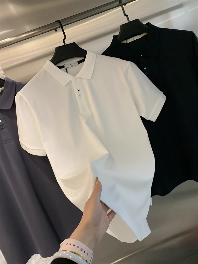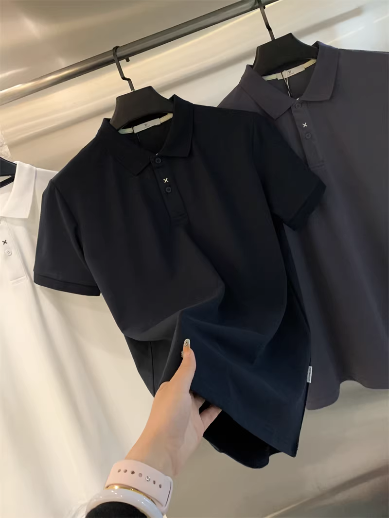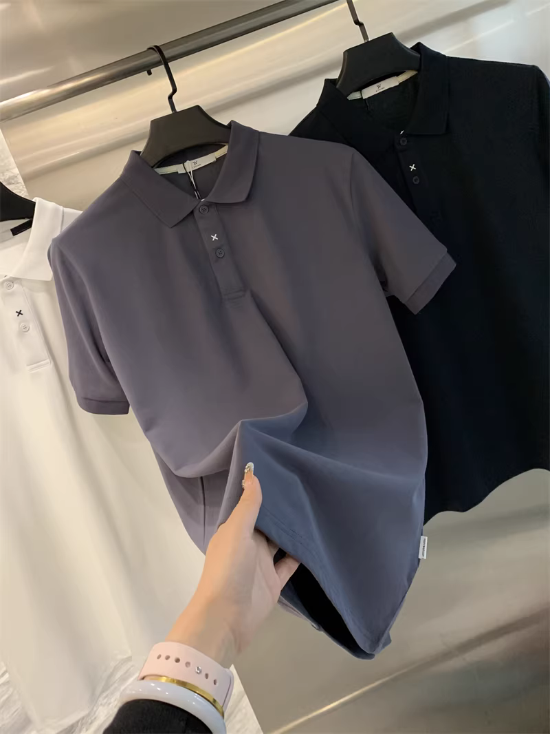 - Phong cách nhà thiết kế Don Quixote! Chất liệu cotton pique! Áo polo nam mùa hè thoáng khí, màu trơn, tay ngắn, kiểu dáng thời thượng