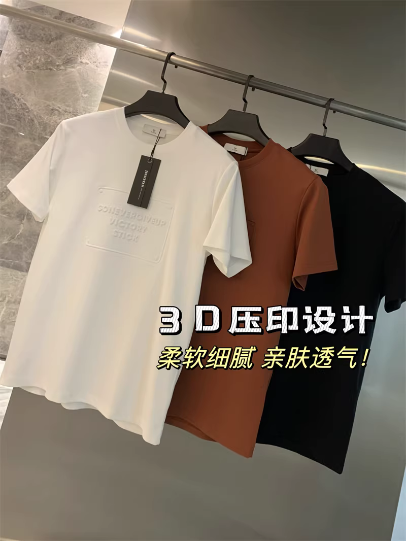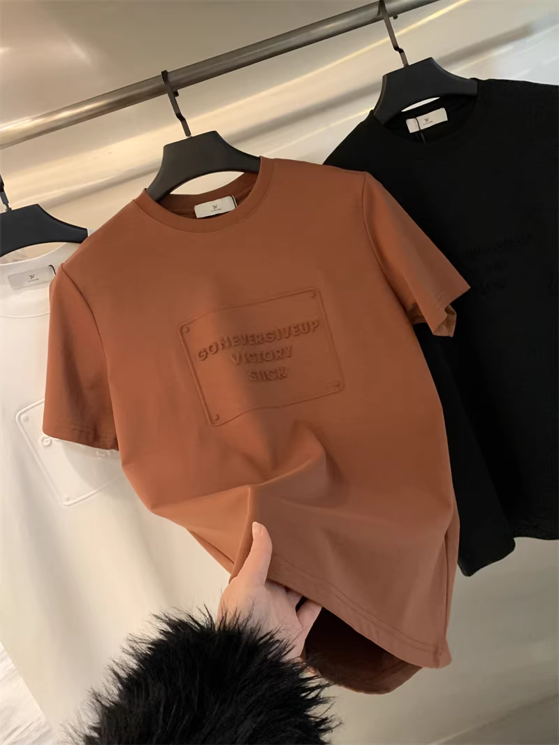 Phong cách nhà thiết kế Don Quixote! Thiết kế nổi 3D! Áo thun ngắn tay màu trơn mùa hè, phong cách giản dị, đa năng, dành cho cặp đôi.