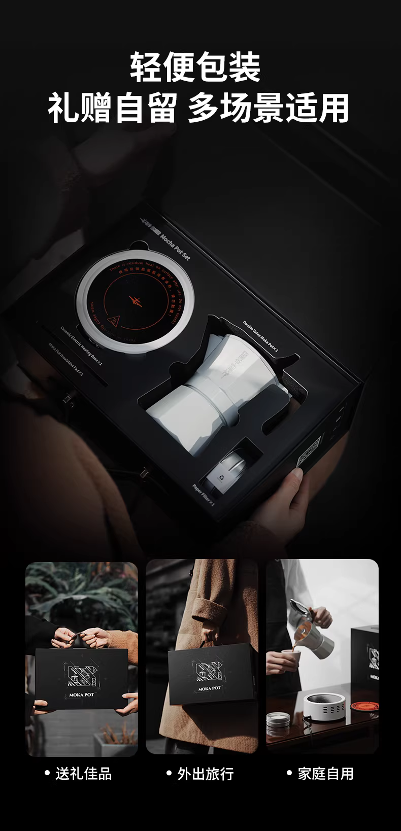 - Quà tặng ngày lễ | Bộ quà tặng pha cà phê moka hai van Bomber MHW, cà phê espresso Ý pha thủ công, bộ bếp điện gốm