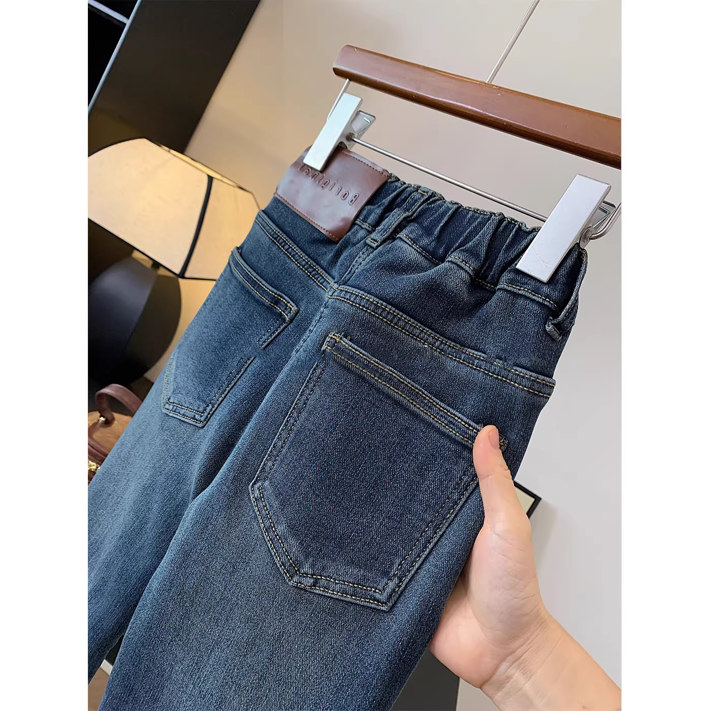 - Quần áo cỡ lớn dành cho nữ mùa đông, quần jean ống loe lót lông cừu, quần ống thẳng tích hợp lông cừu cạp cao đa năng phong cách Hàn Quốc, hợp thời trang.