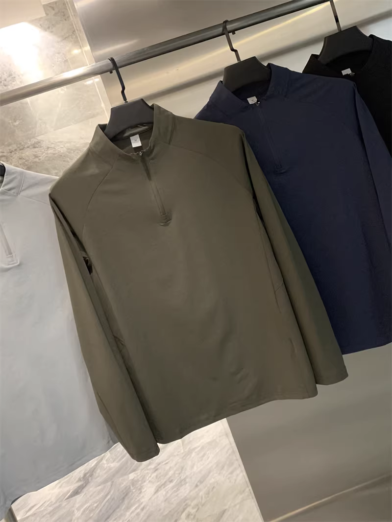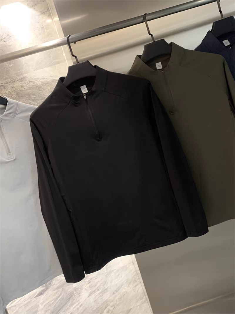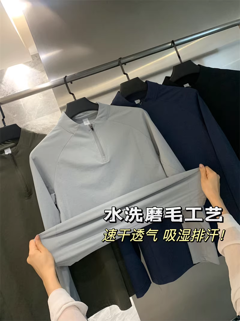 Quần áo ngoài trời chức năng dòng D của Don Quixote! Hút ẩm, nhanh khô, thoáng khí! Áo thun thể thao dài tay có khóa kéo nửa thân.