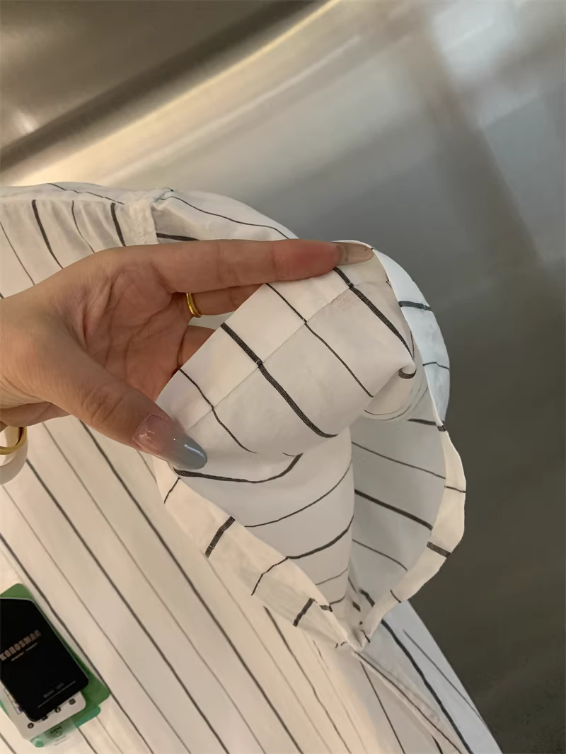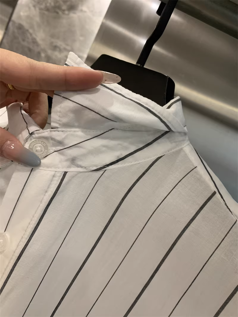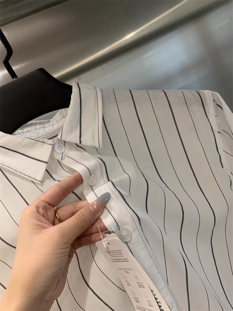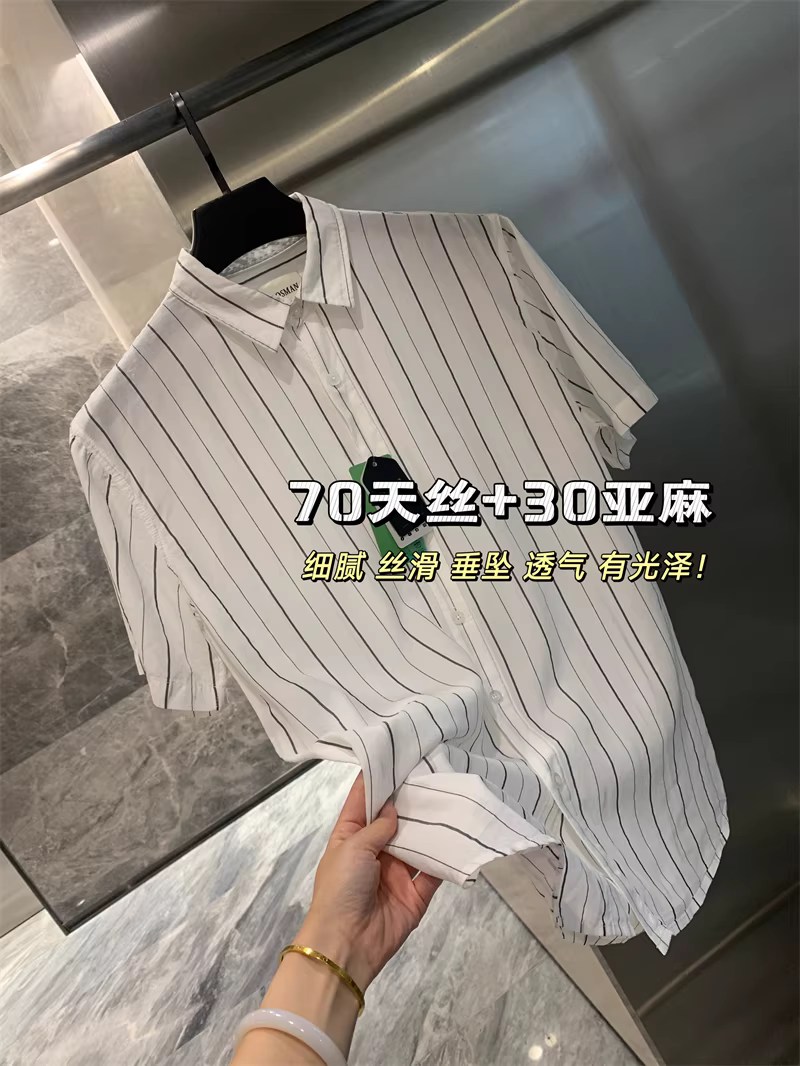 Quần áo sang trọng Don Quixote! Tencel Lyocell + vải lanh! Áo sơ mi ngắn tay sọc mùa hè nhẹ và thoáng khí.