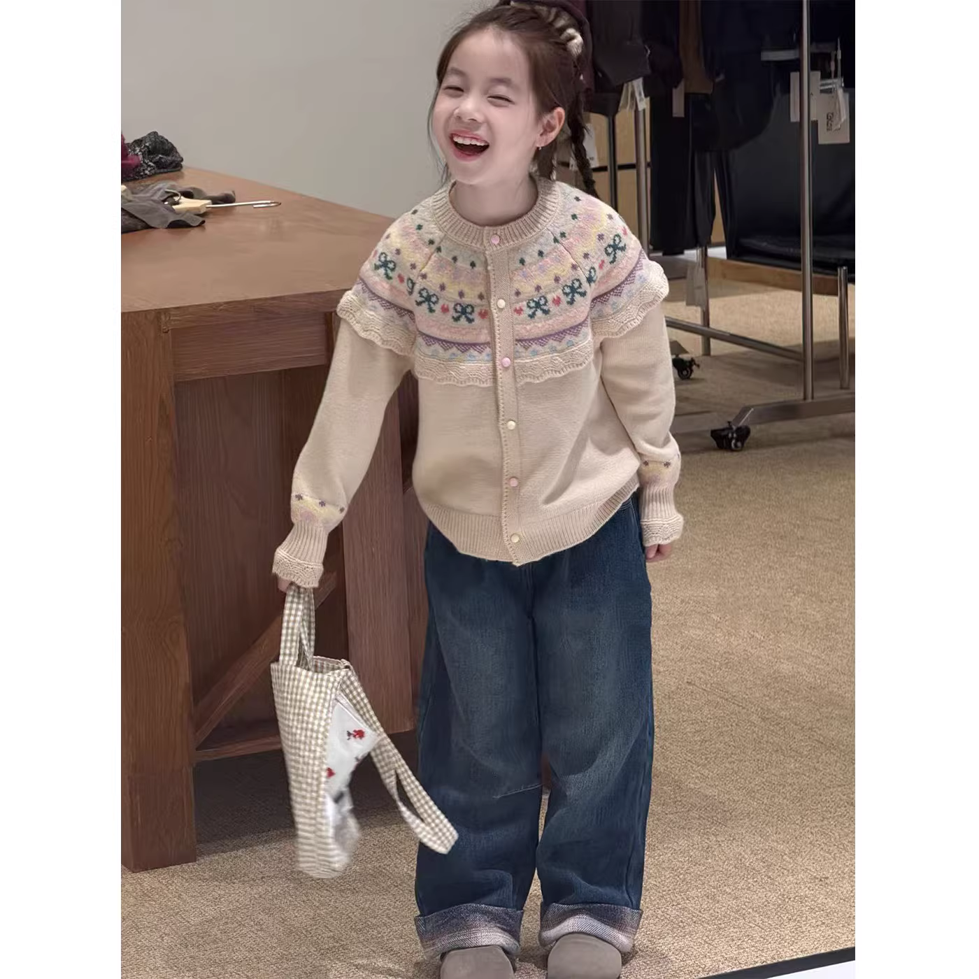 - Quần áo trẻ em, quần jean có viền lông cừu cho trẻ em, quần cà rốt thường ngày cho bé gái mùa thu đông, quần ống rộng đa năng, phong cách giản dị