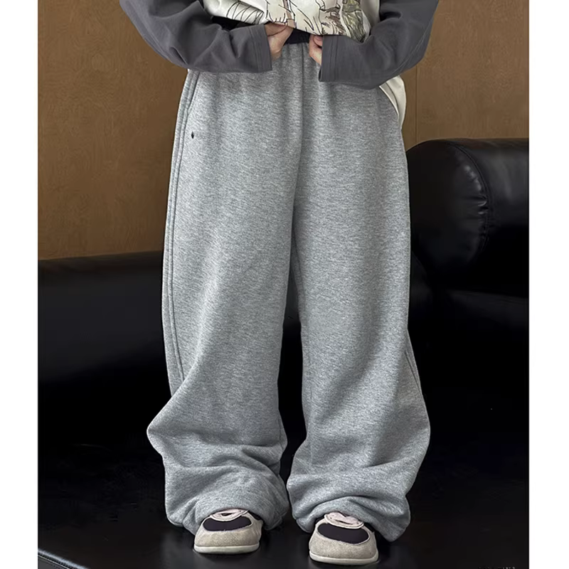 - Quần áo trẻ em thu đông 2025, quần unisex màu xám, quần thể thao rộng rãi đa năng cho trẻ lớn