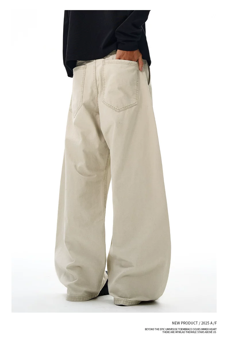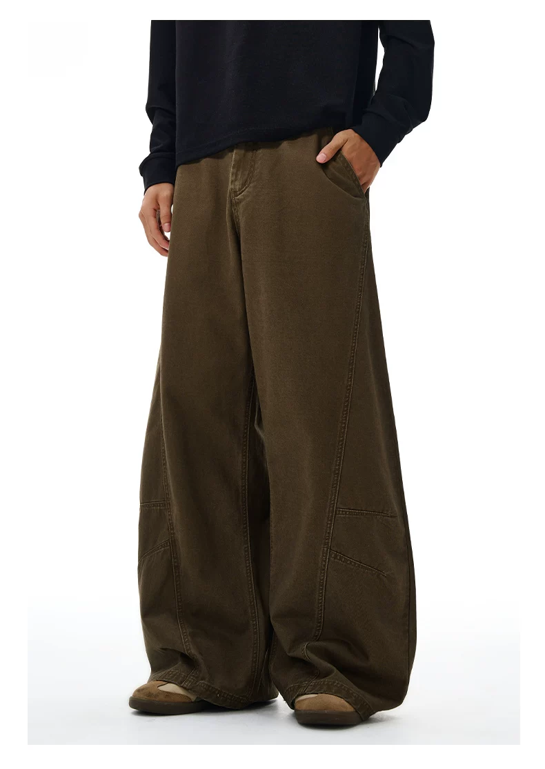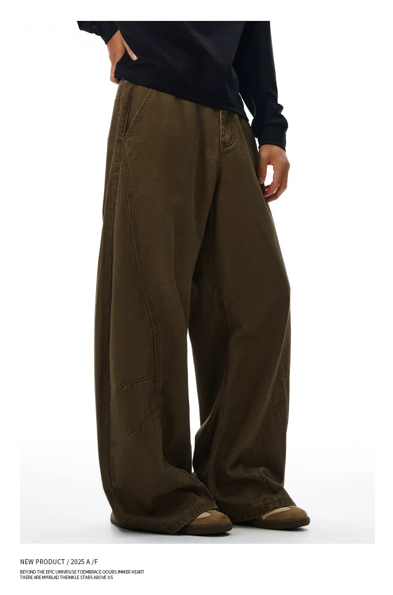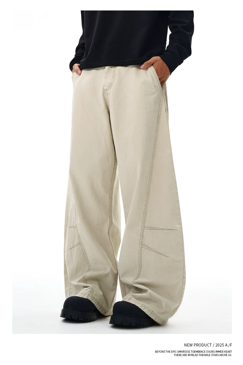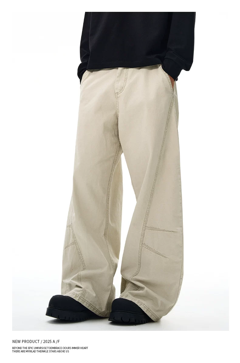 Quần âu nam cotton nguyên chất dáng thẳng OMZM, quần ống rộng mùa đông mới 2025, quần kiểu dáng thời thượng đa năng cá tính phong cách đường phố
