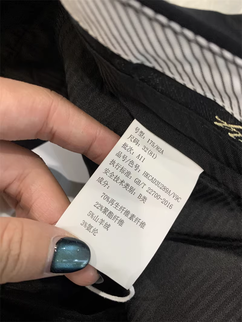 | 31 | 腰围80.5 | 臀围99.8 | 脚口围36 | 裤长107 |