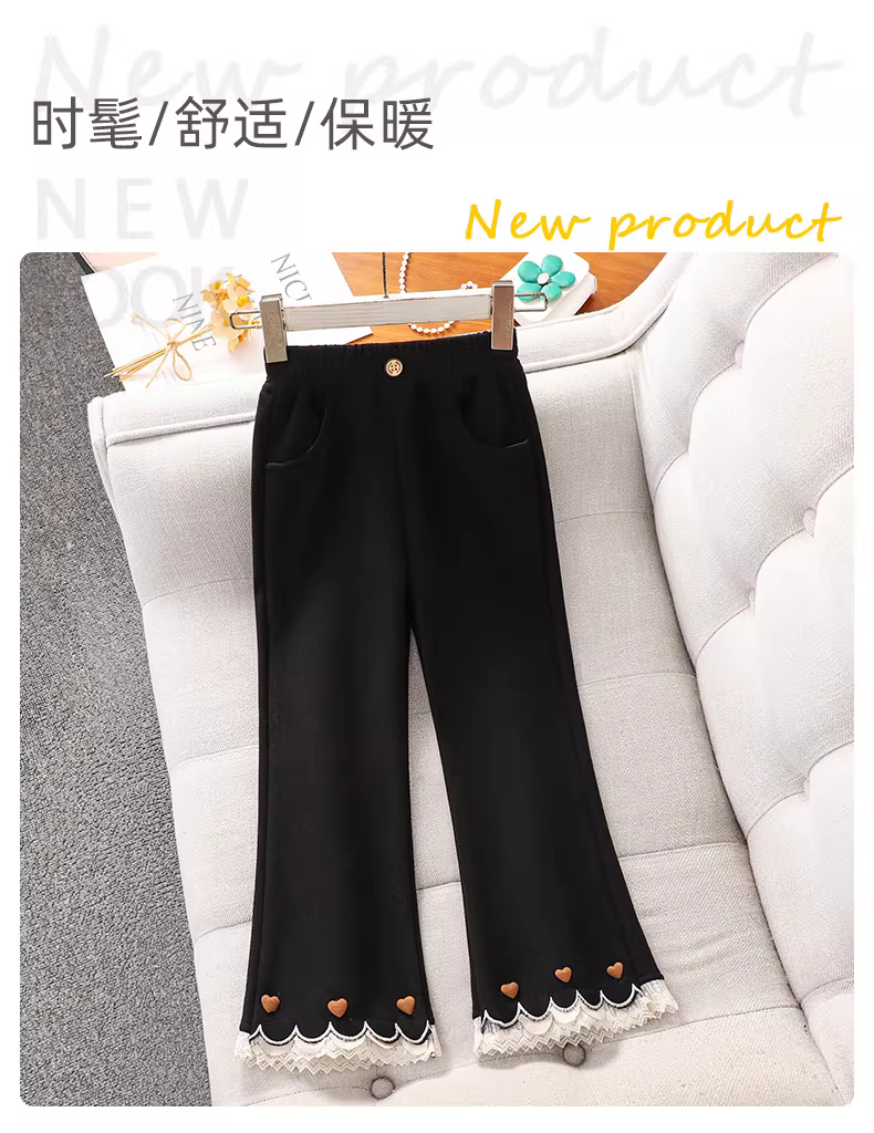 - Quần bé gái kiểu mới 2025, quần ống loe ôm dáng trẻ em, thu đông, quần dày lót lông giữ ấm cho bé gái lớn, quần thường ngày