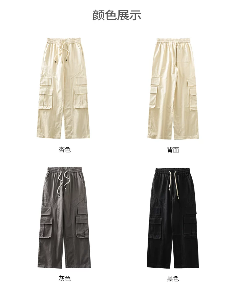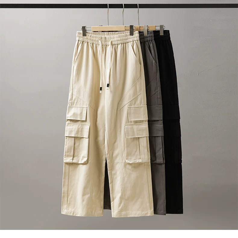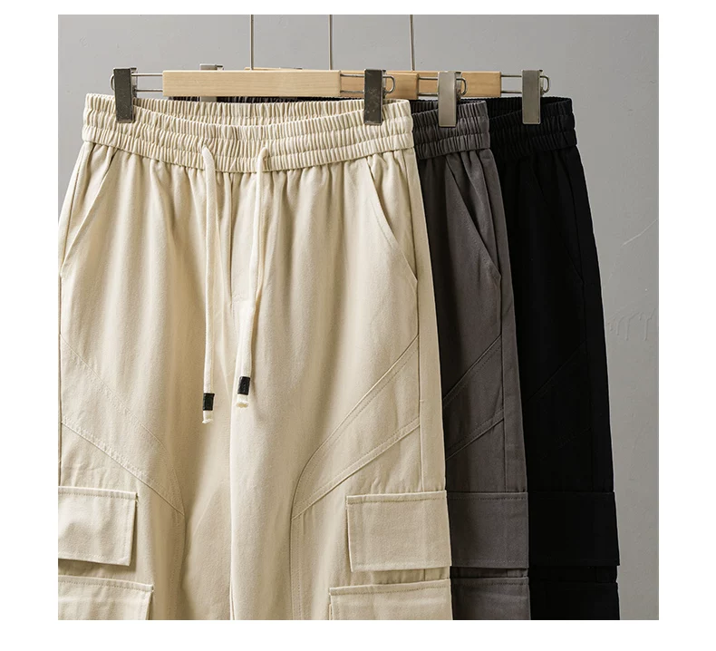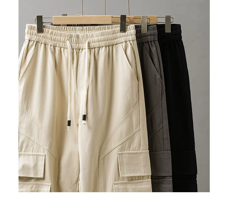 Quần cargo cotton dày dặn kiểu Mỹ OMZM dành cho nam, quần thường ngày có túi chắp vá mùa hè, quần dài màu trơn rộng rãi, hợp thời trang.