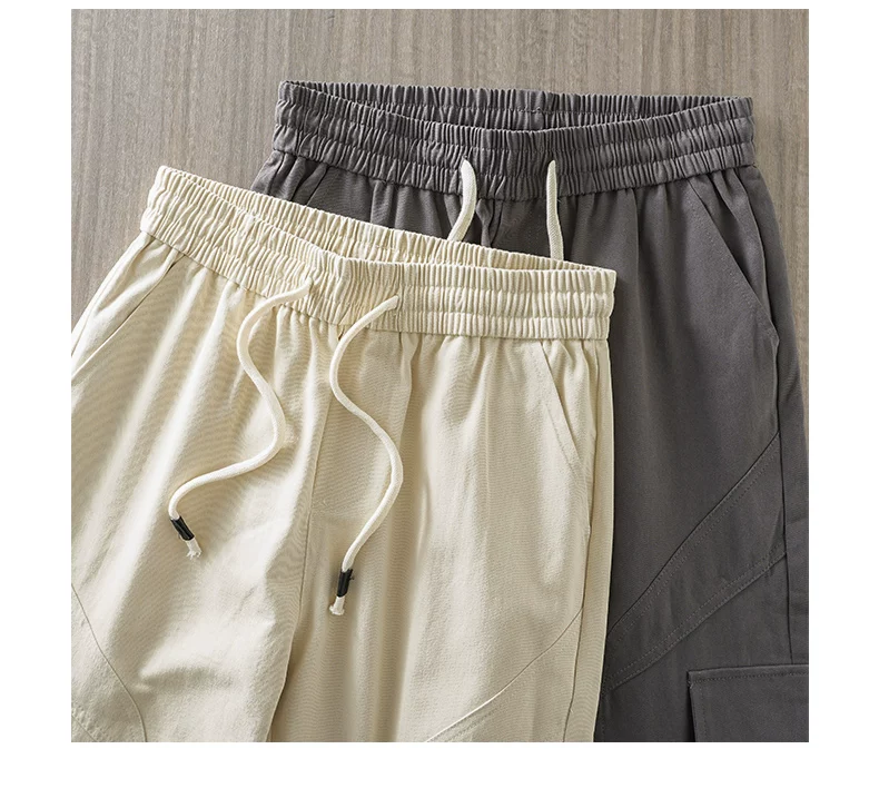 - Quần cargo cotton dày dặn kiểu Mỹ OMZM dành cho nam, quần thường ngày có túi chắp vá mùa hè, quần dài màu trơn rộng rãi, hợp thời trang.
