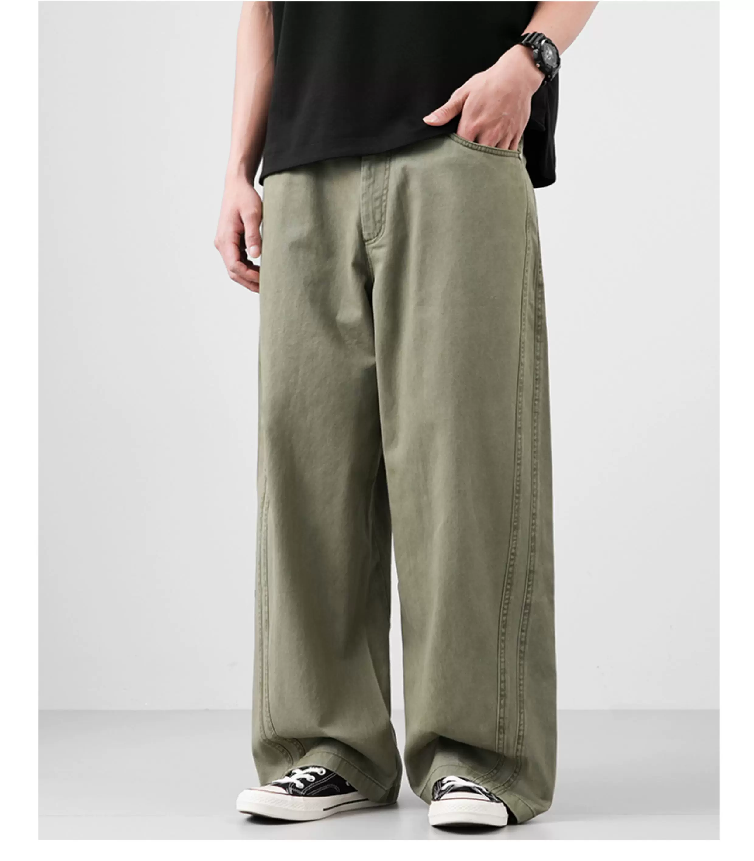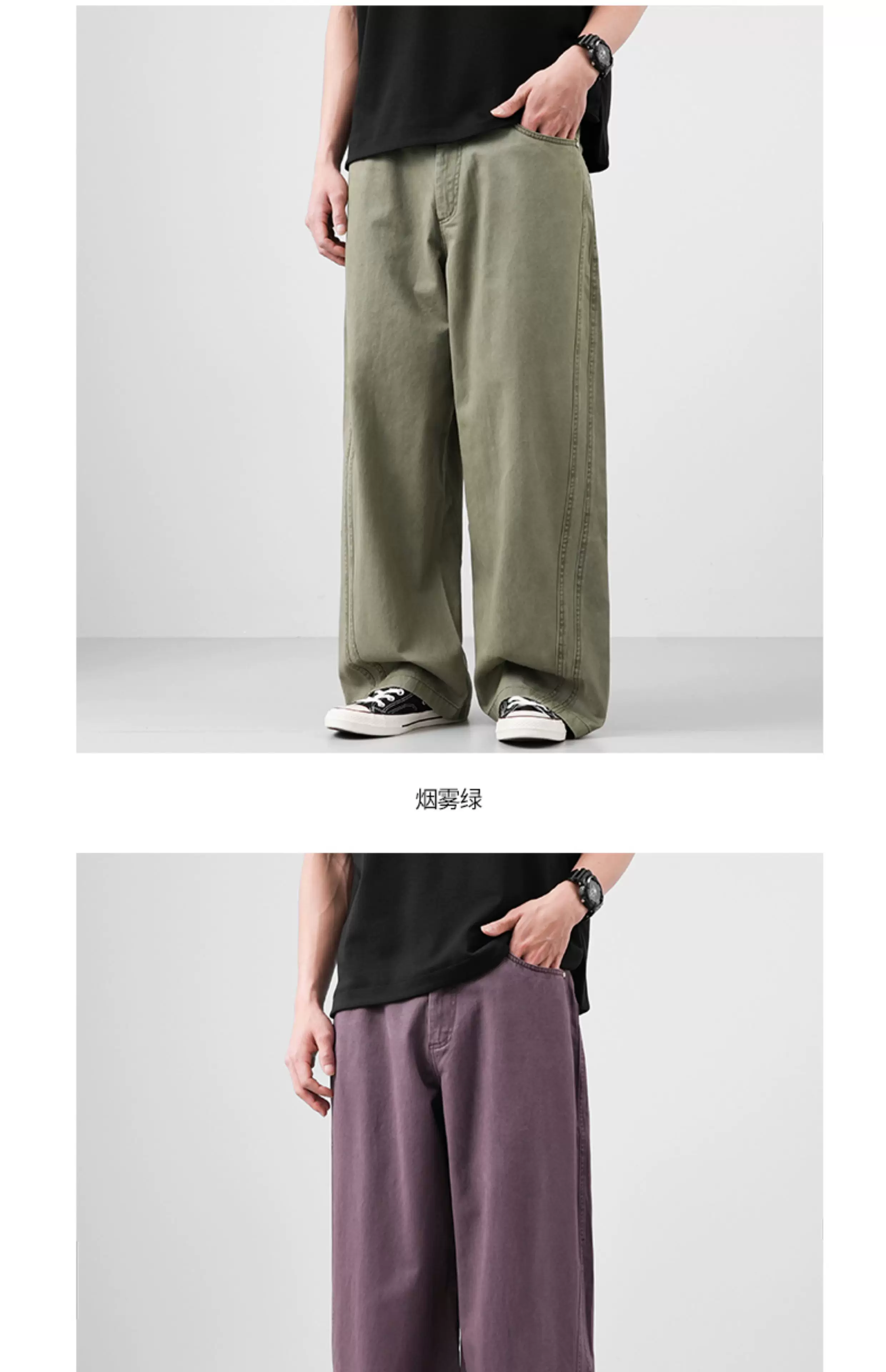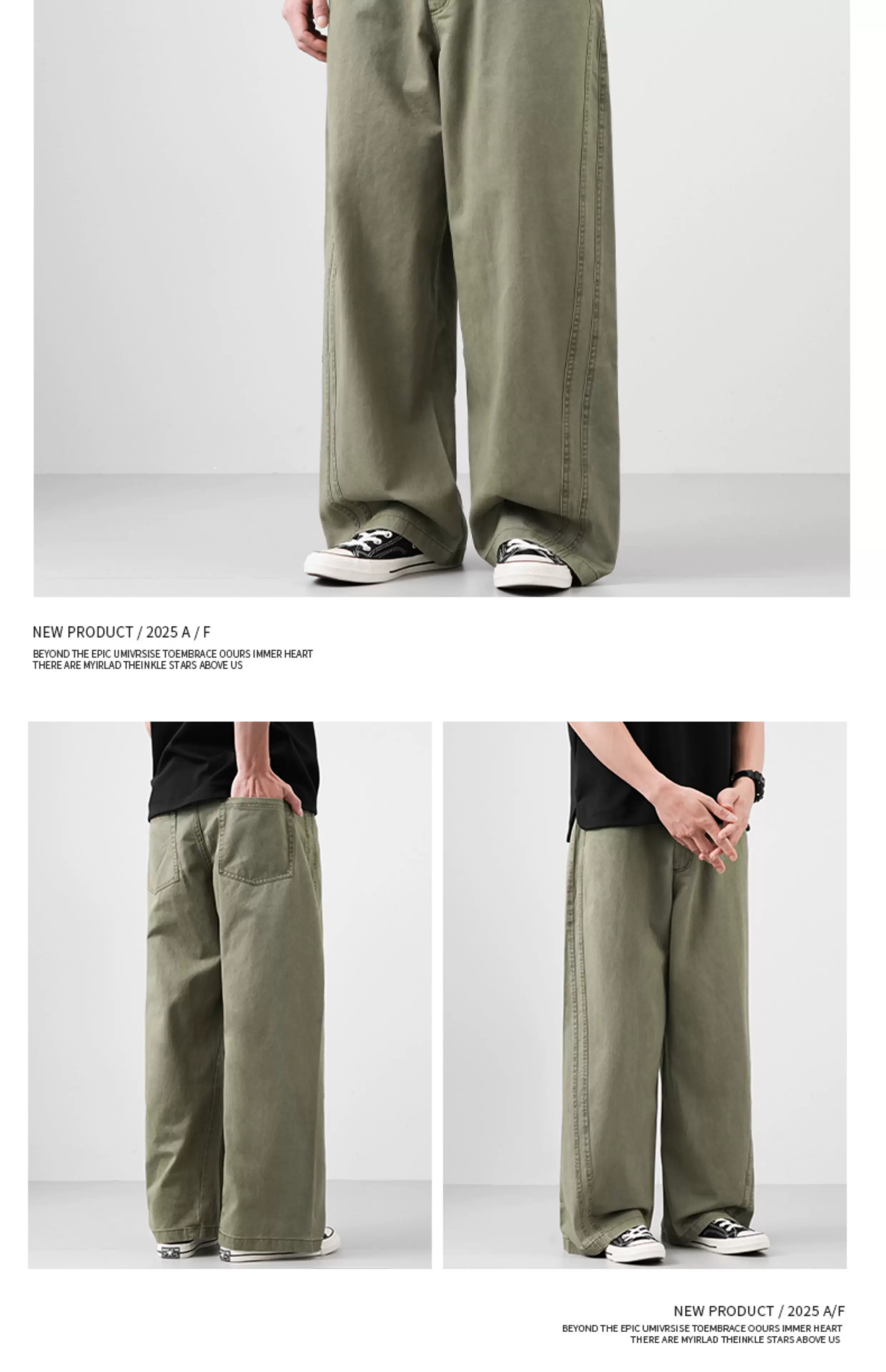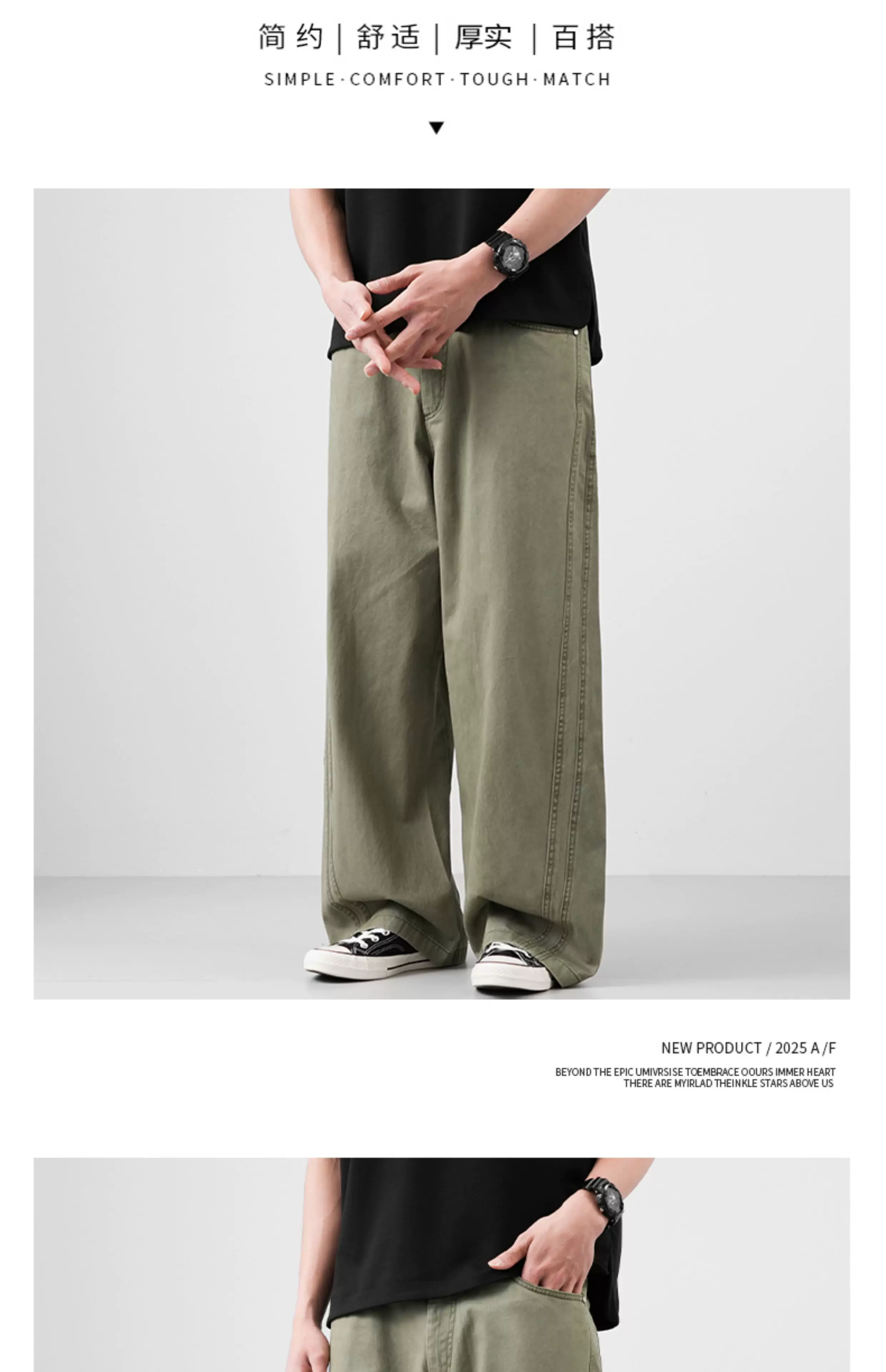 - Quần cargo cotton nguyên chất hạng nặng OMZM dành cho nam, quần dáng rộng kiểu Mỹ mùa hè, quần dài đường phố cao cấp được giặt thông thường