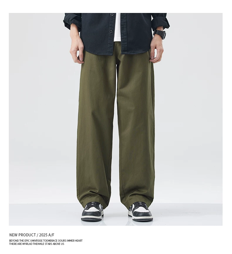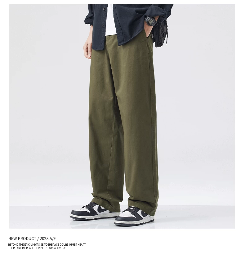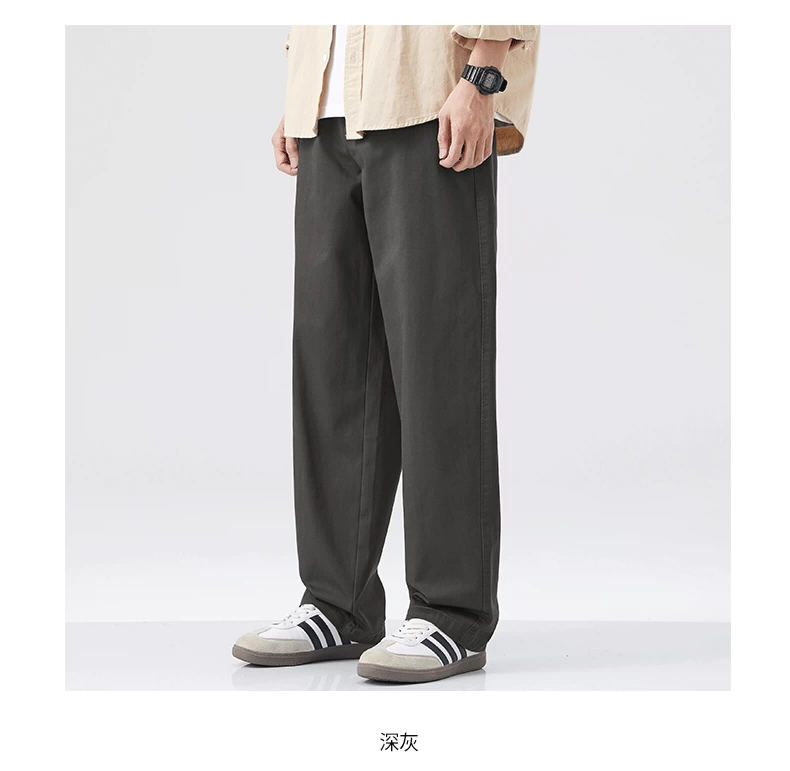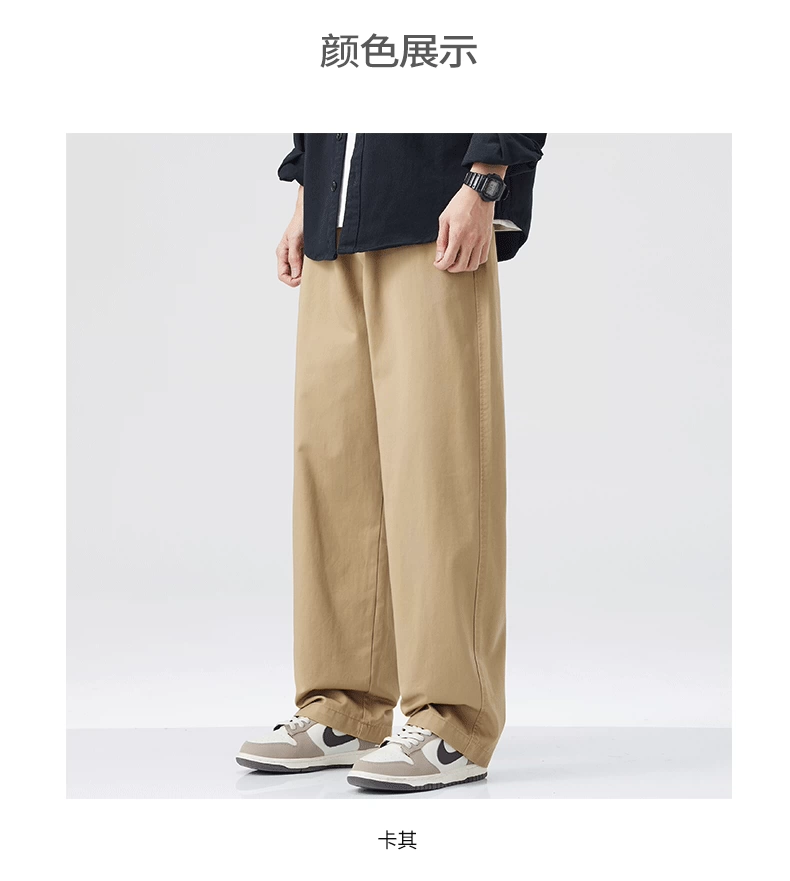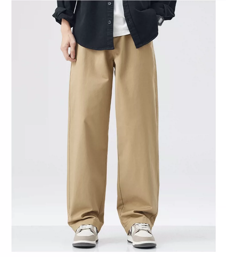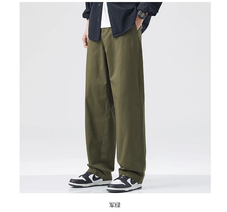 - Quần cargo cotton nguyên chất kiểu Mỹ OMZM dành cho nam, quần ống rộng dáng rộng, mỏng, nhanh khô, mùa hè, quần dài màu kaki cổ điển