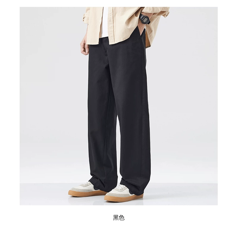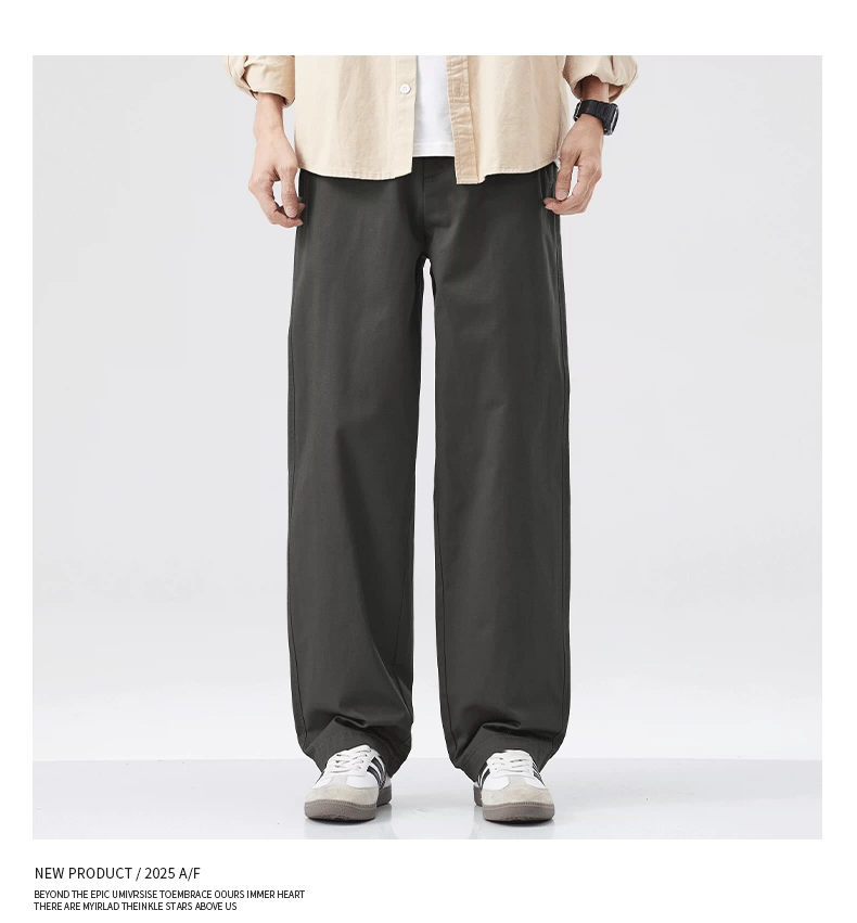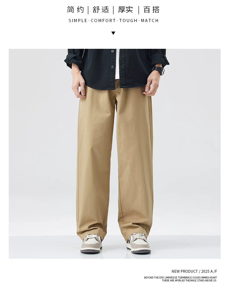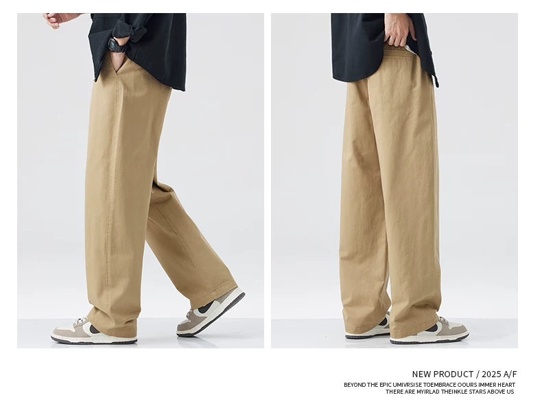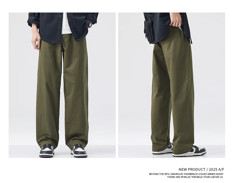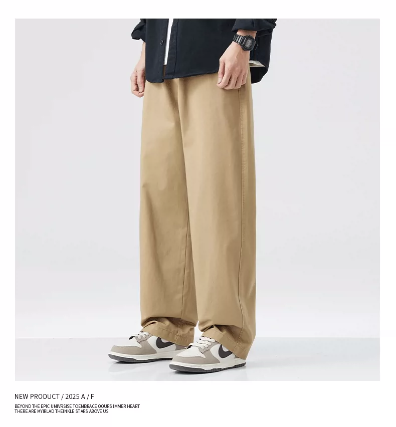 - Quần cargo cotton nguyên chất kiểu Mỹ OMZM dành cho nam, quần ống rộng dáng rộng, mỏng, nhanh khô, mùa hè, quần dài màu kaki cổ điển