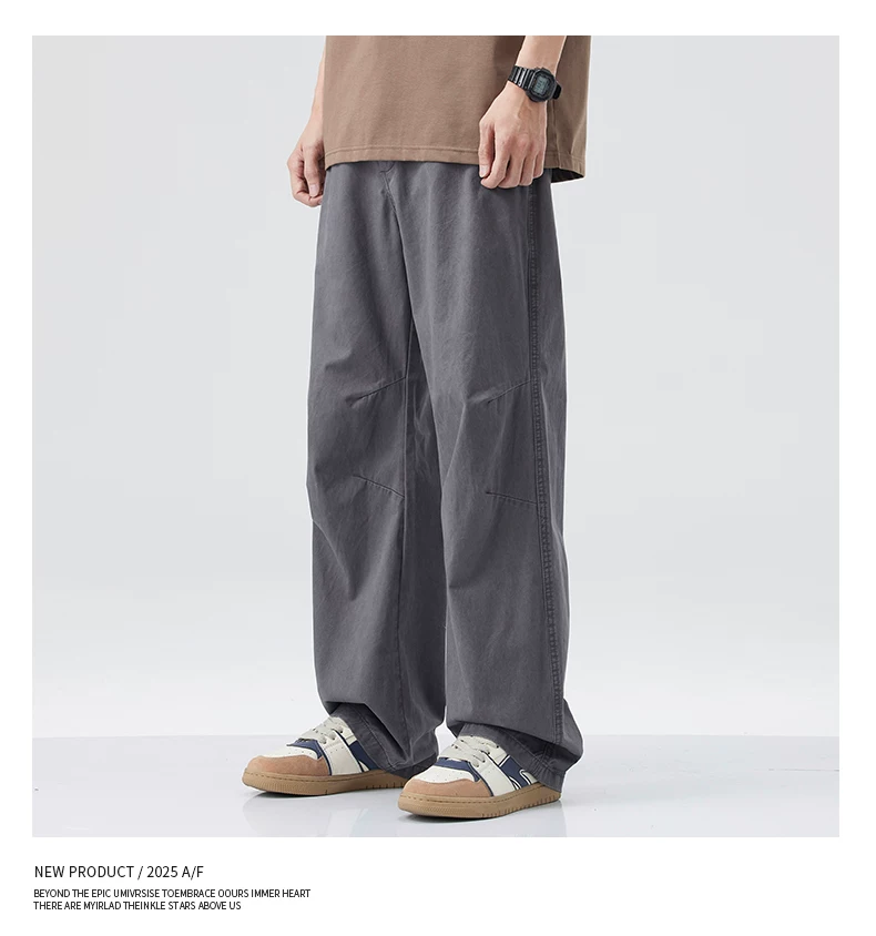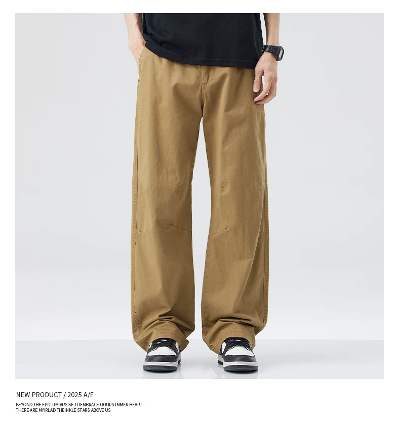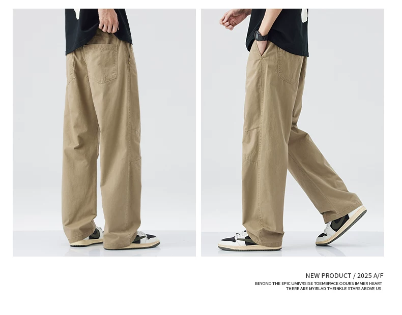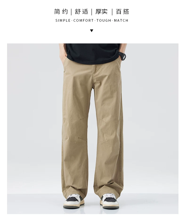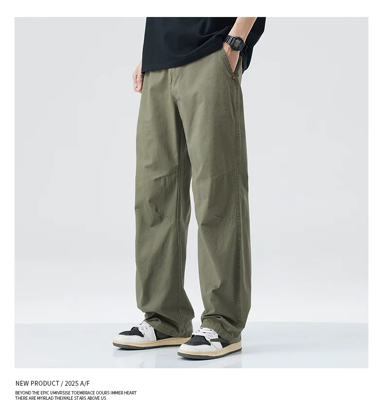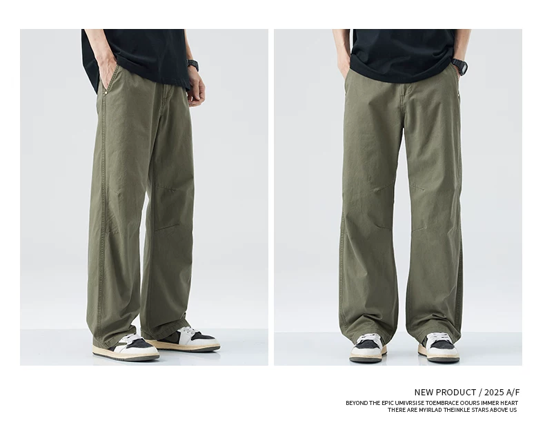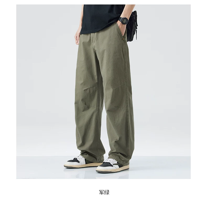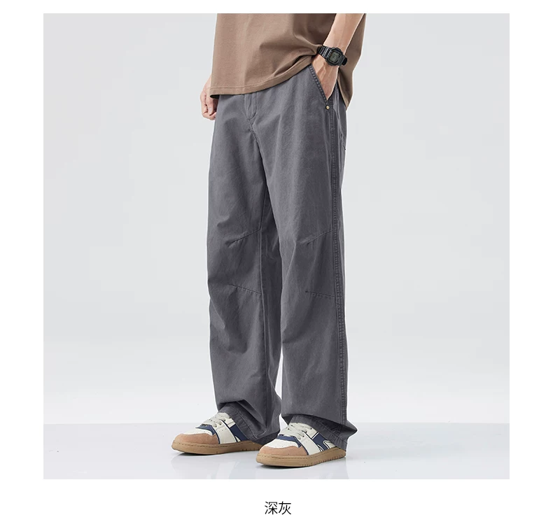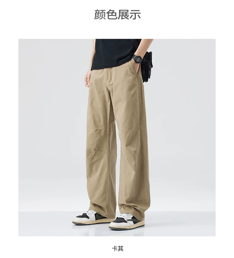 - Quần cargo cotton nguyên chất kiểu Mỹ OMZM dành cho nam, quần ống rộng dáng rộng mỏng nhanh khô mùa hè, quần kaki phong cách retro giản dị