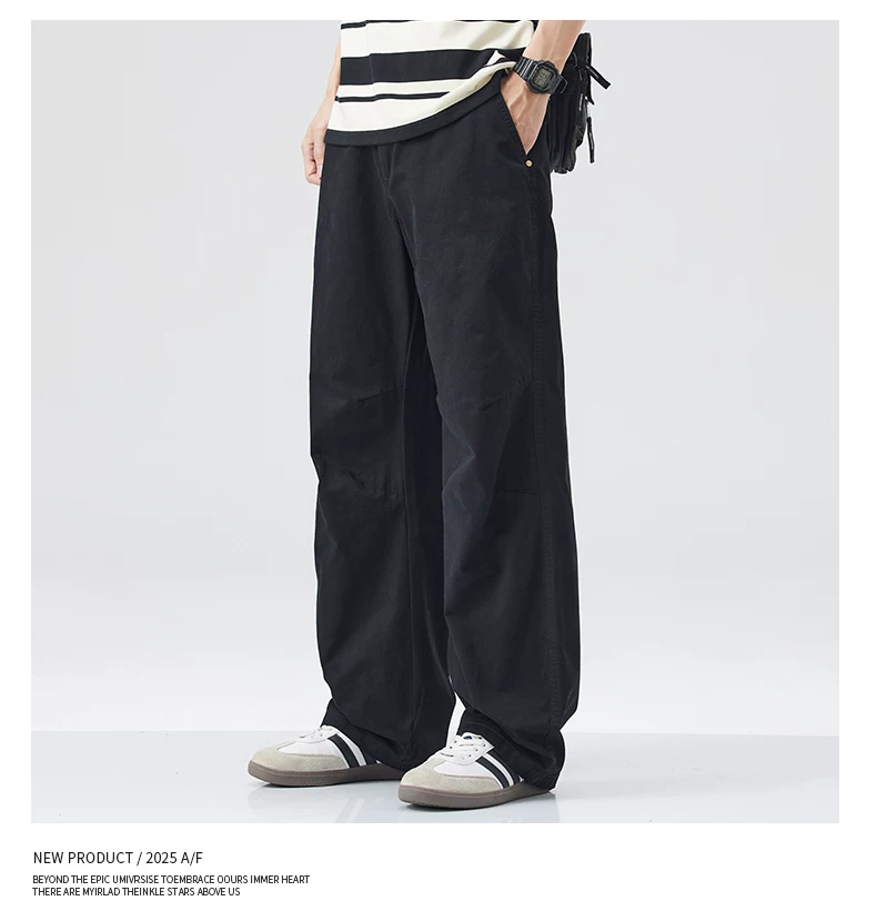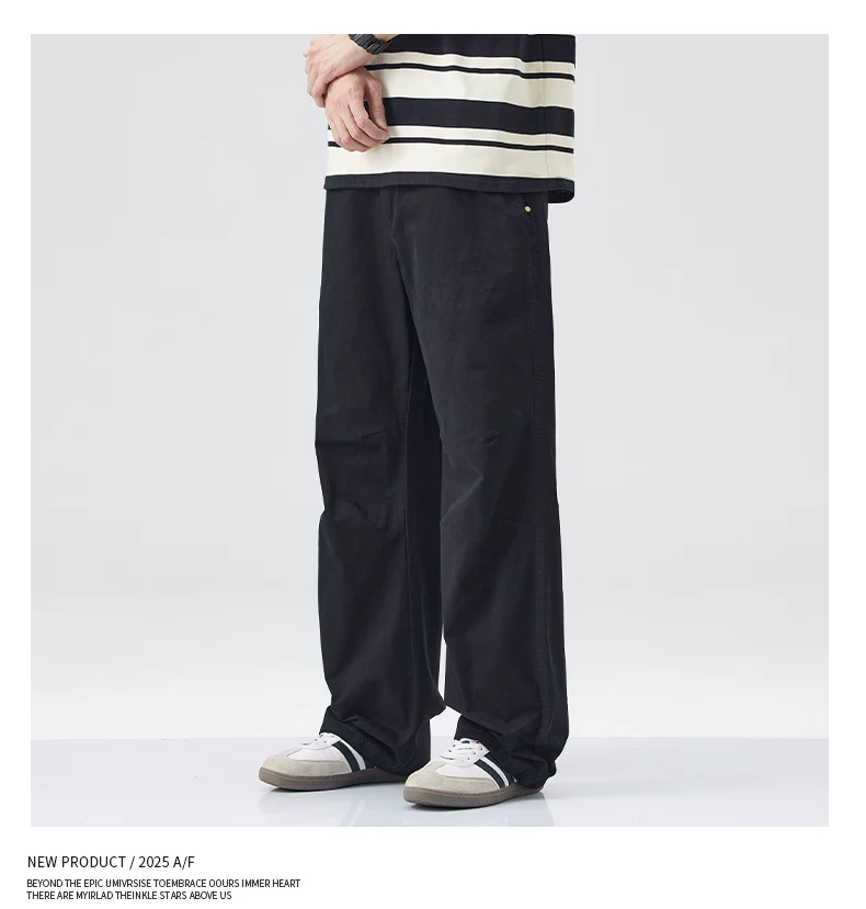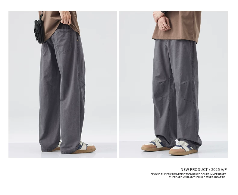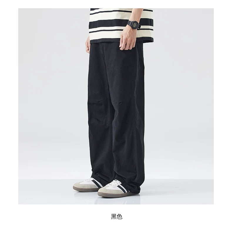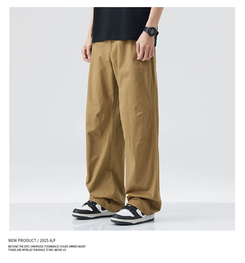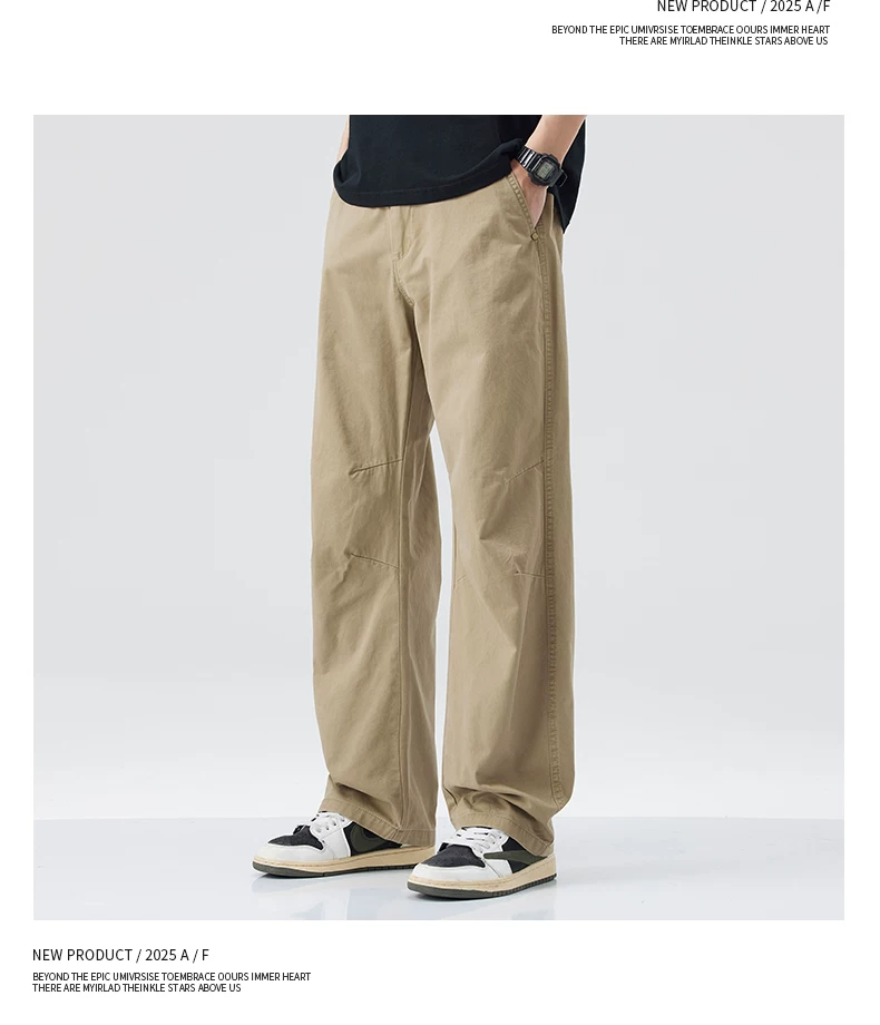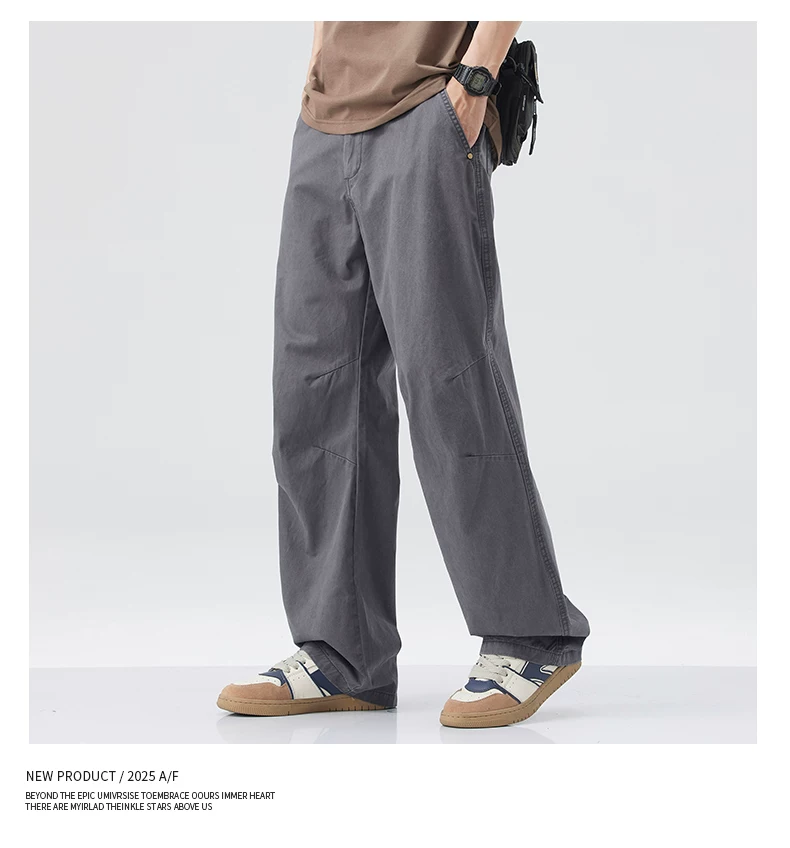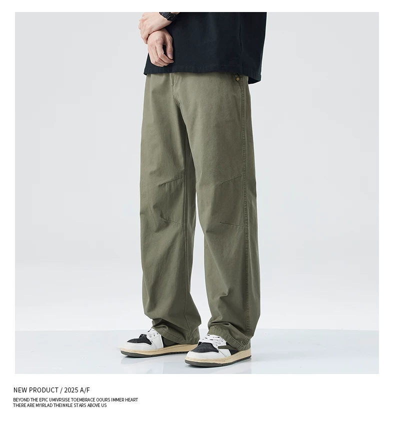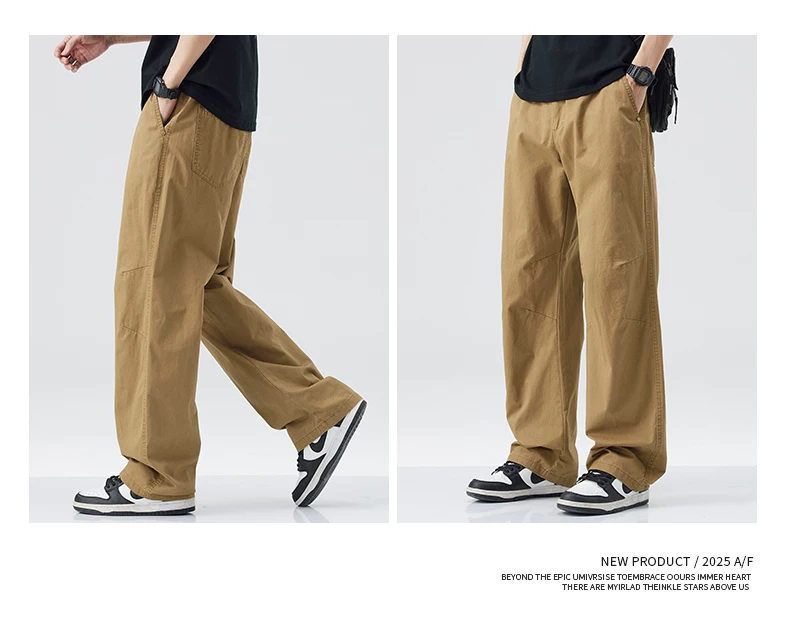 - Quần cargo cotton nguyên chất kiểu Mỹ OMZM dành cho nam, quần ống rộng dáng rộng mỏng nhanh khô mùa hè, quần kaki phong cách retro giản dị