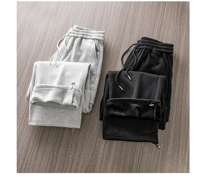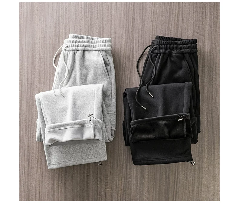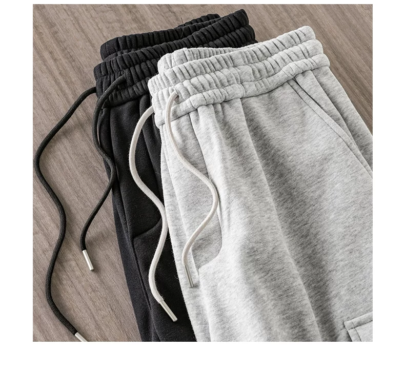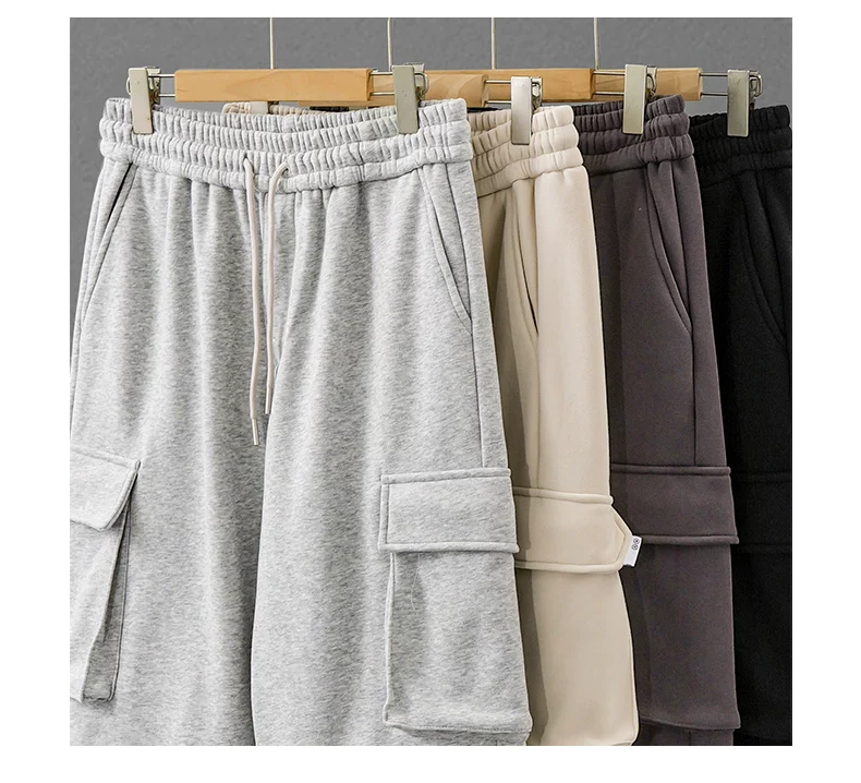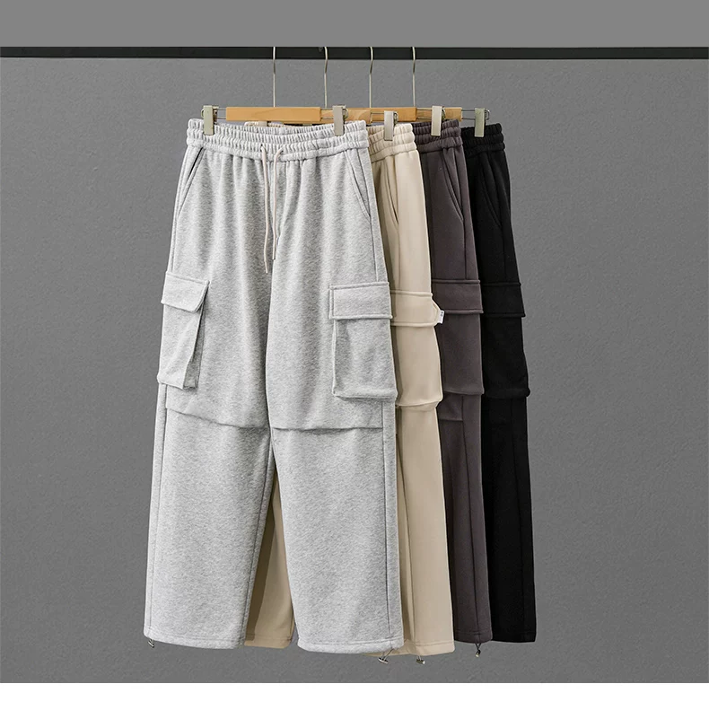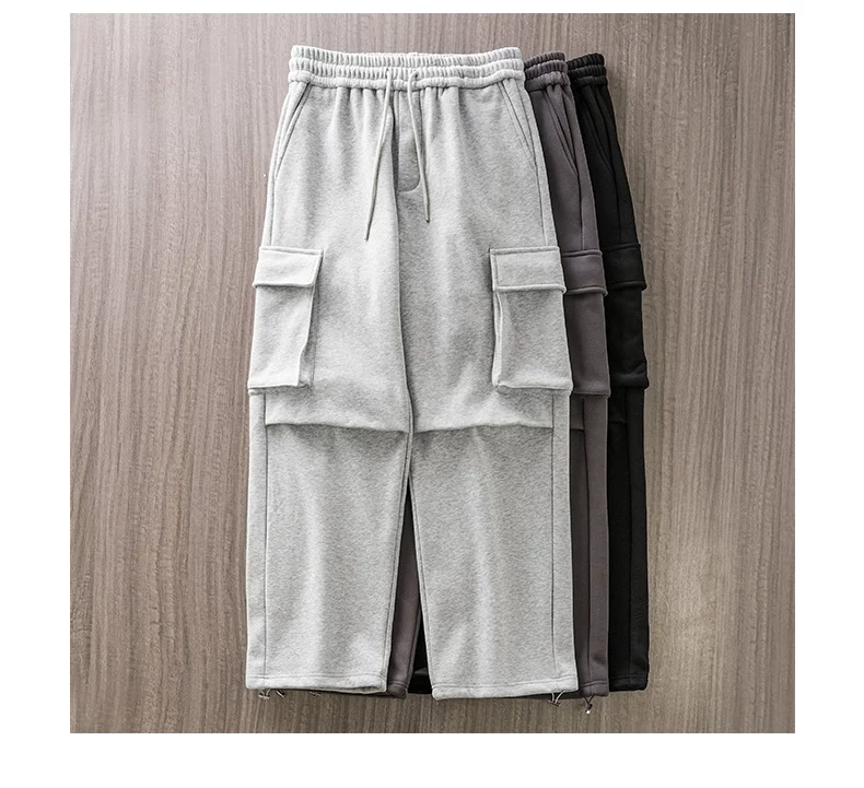 Quần cargo lót lông cừu hạng nặng OMZM460G dành cho nam, phong cách thu đông, quần dài có dây rút kiểu jogger, dày dặn và ấm áp, quần ống thẳng thông thường.
