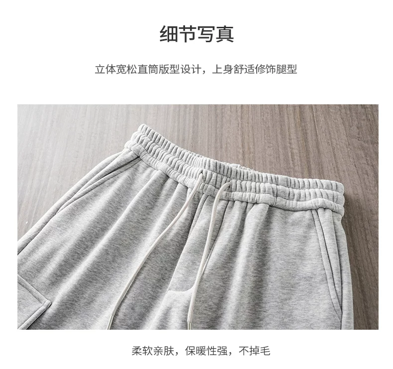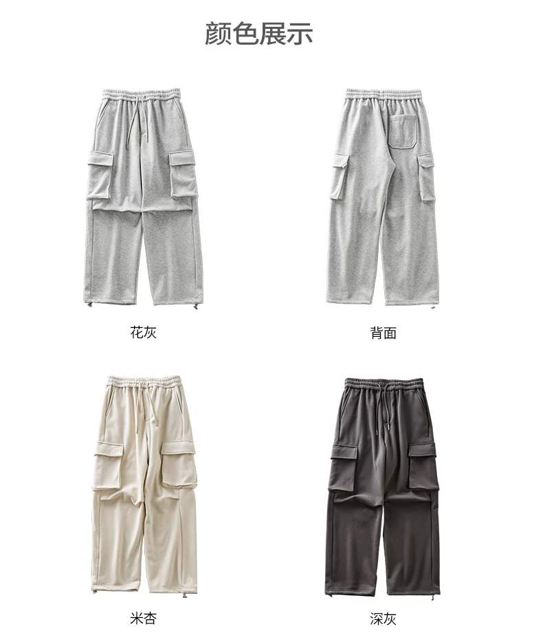 - Quần cargo lót lông cừu hạng nặng OMZM460G dành cho nam, phong cách thu đông, quần dài có dây rút kiểu jogger, dày dặn và ấm áp, quần ống thẳng thông thường.