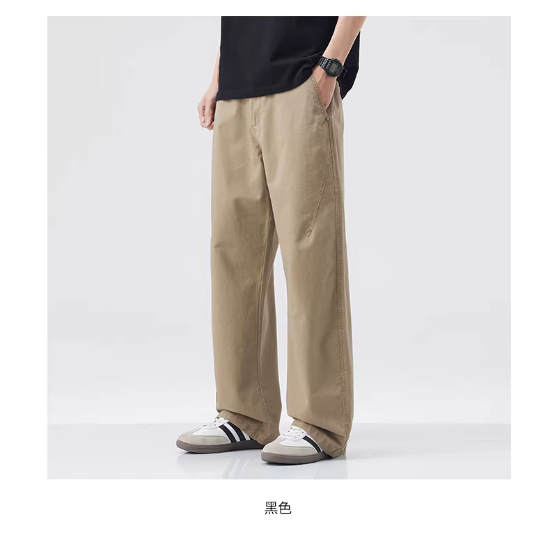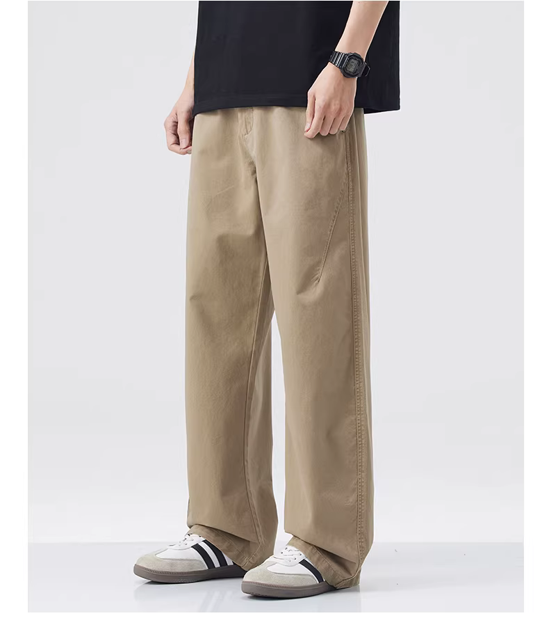 - Quần cargo nam chất liệu dày dặn, quần ống rộng kiểu Mỹ mùa hè, quần kaki cotton nguyên chất dáng thẳng phong cách vintage.