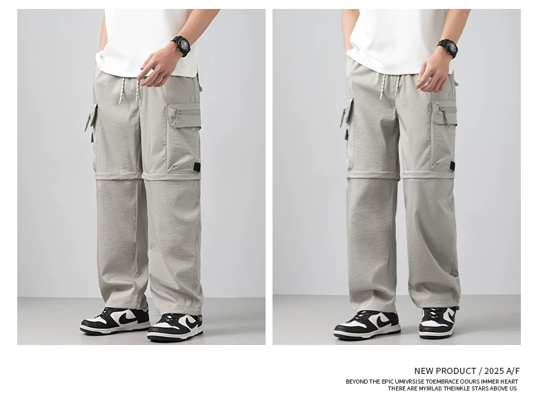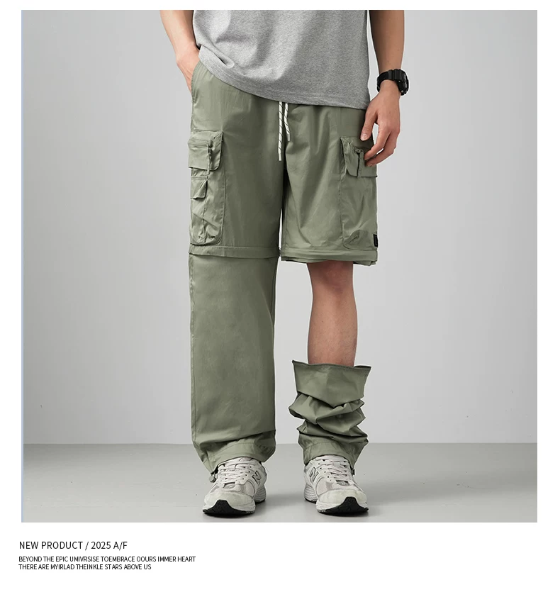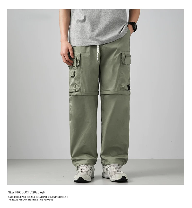 - Quần cargo ngoài trời OMZM có thể tháo rời dành cho nam, quần lính dù nhanh khô bằng vải lụa mùa hè, quần short thể thao rộng rãi, thoải mái