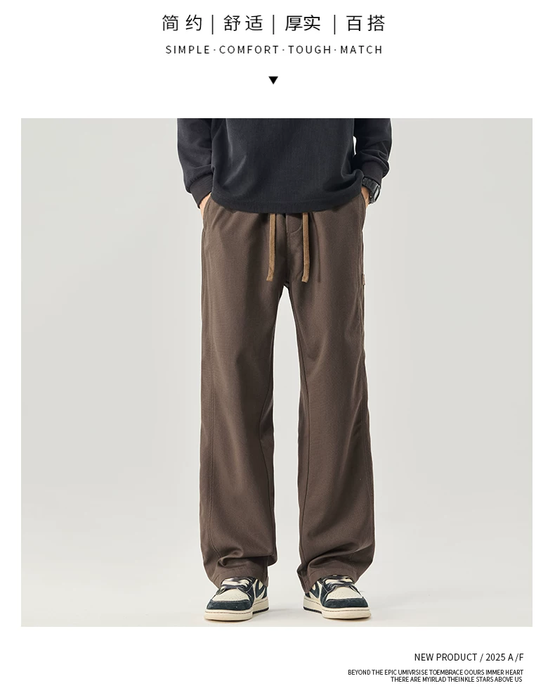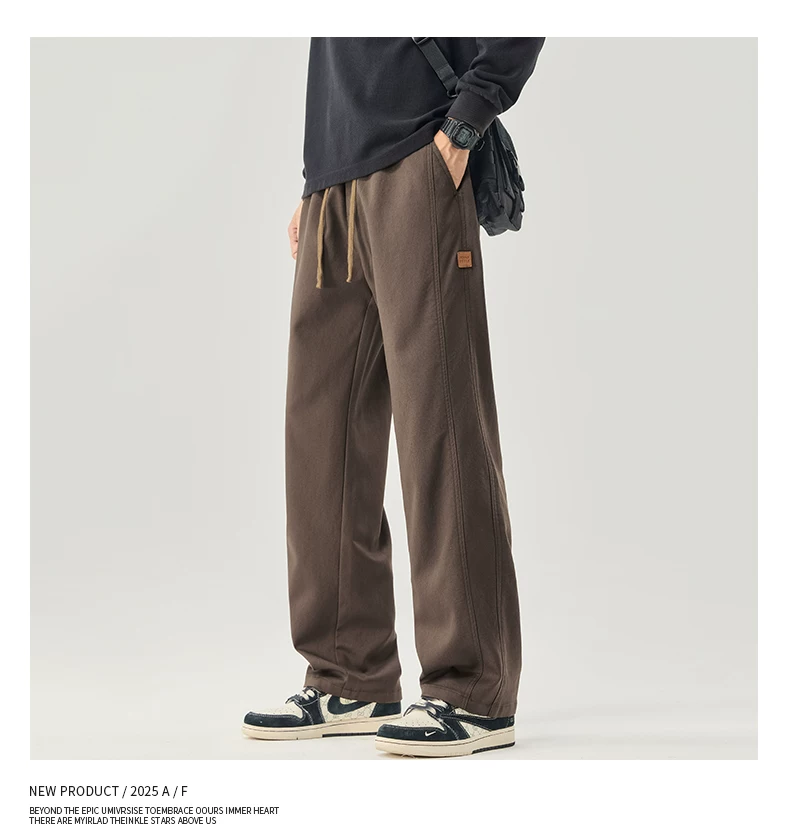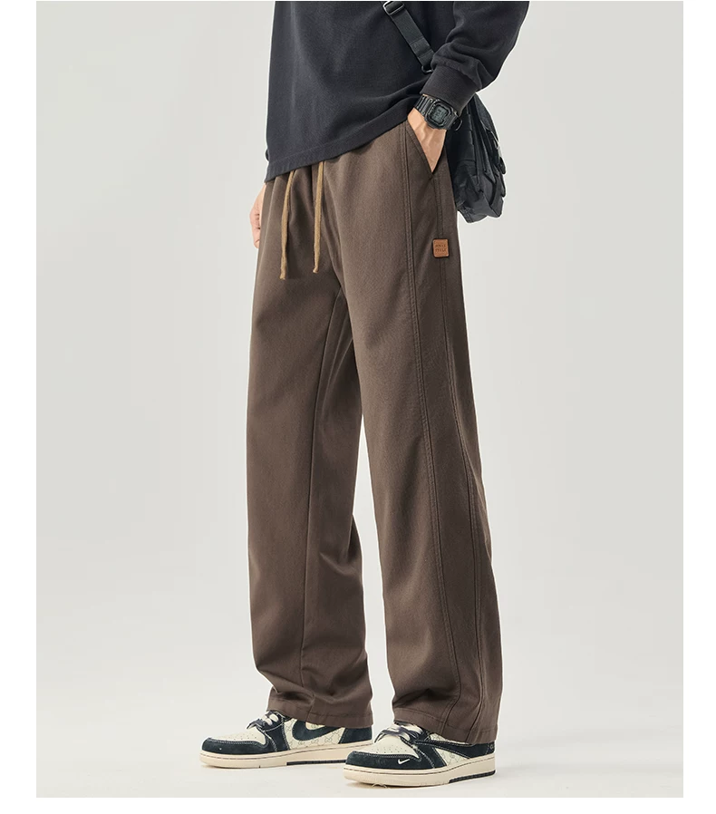 - Quần cargo ống thẳng hạng nặng OMZM dành cho nam, quần ống rộng dáng rộng phong cách retro Mỹ mùa thu, quần dài thể thao Celier Tencel