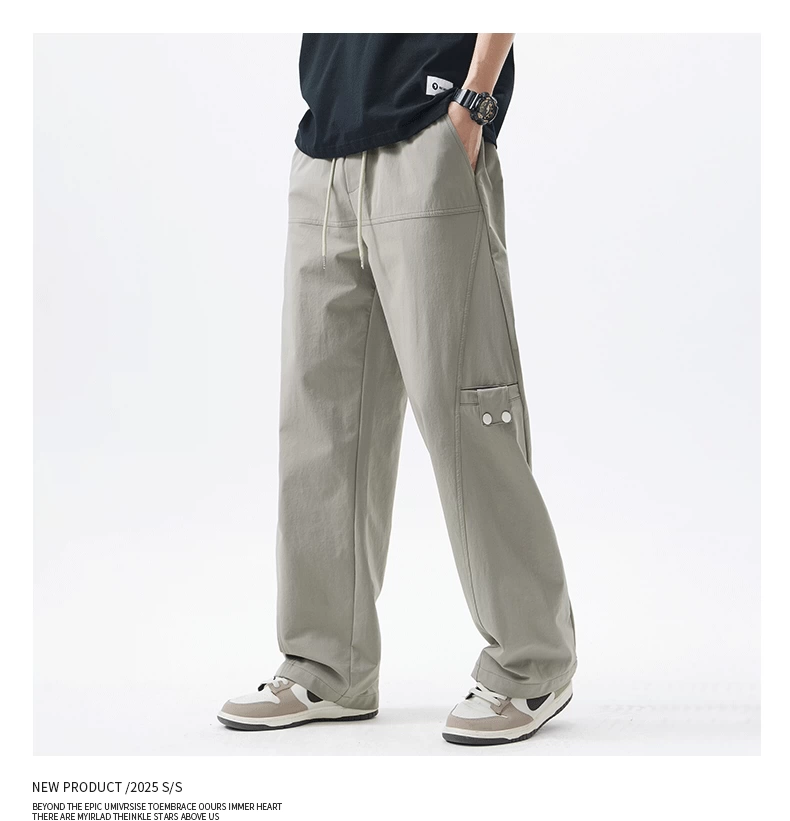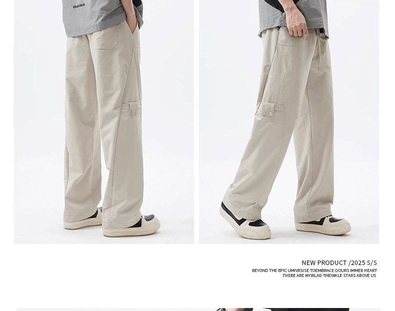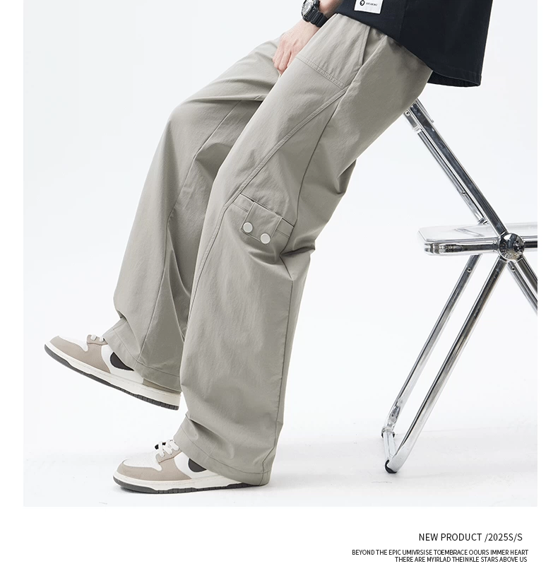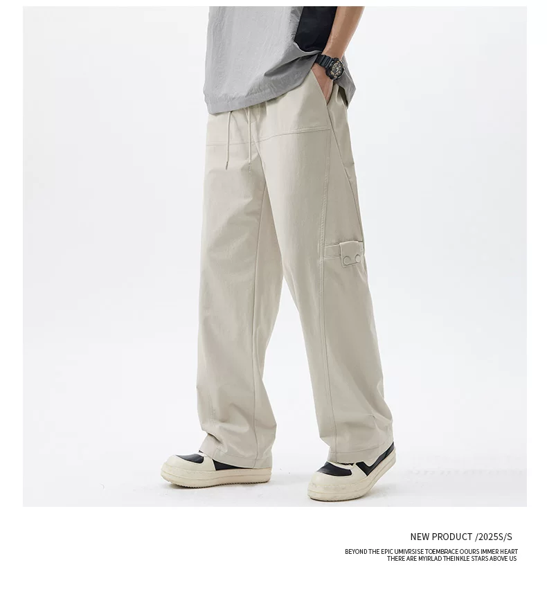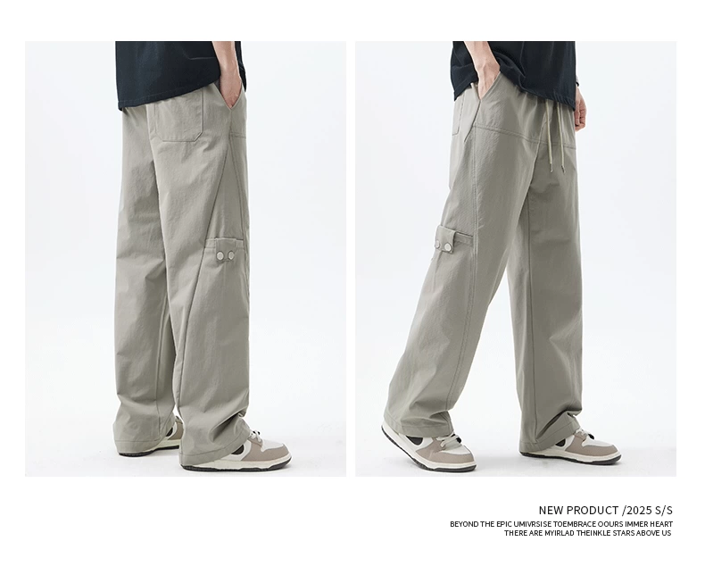 Quần cargo ống thẳng hạng nặng OMZM dành cho nam, quần ống rộng ống thẳng dáng rộng mùa hè, quần lính dù thể thao màu trơn kiểu Mỹ