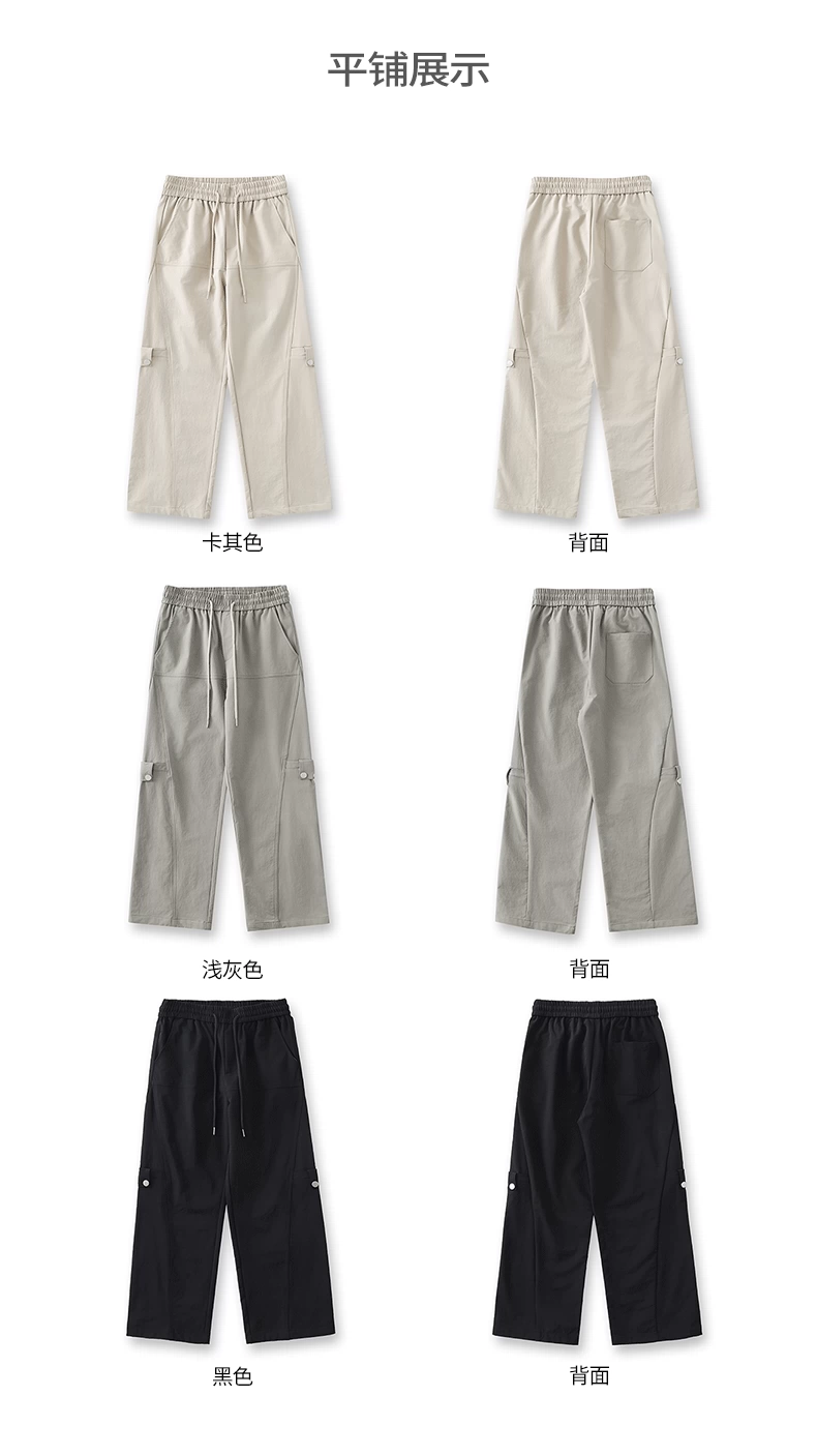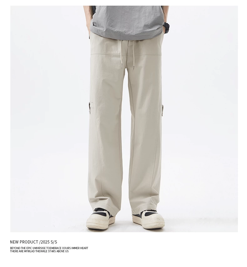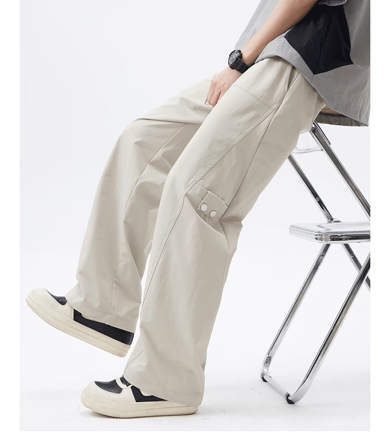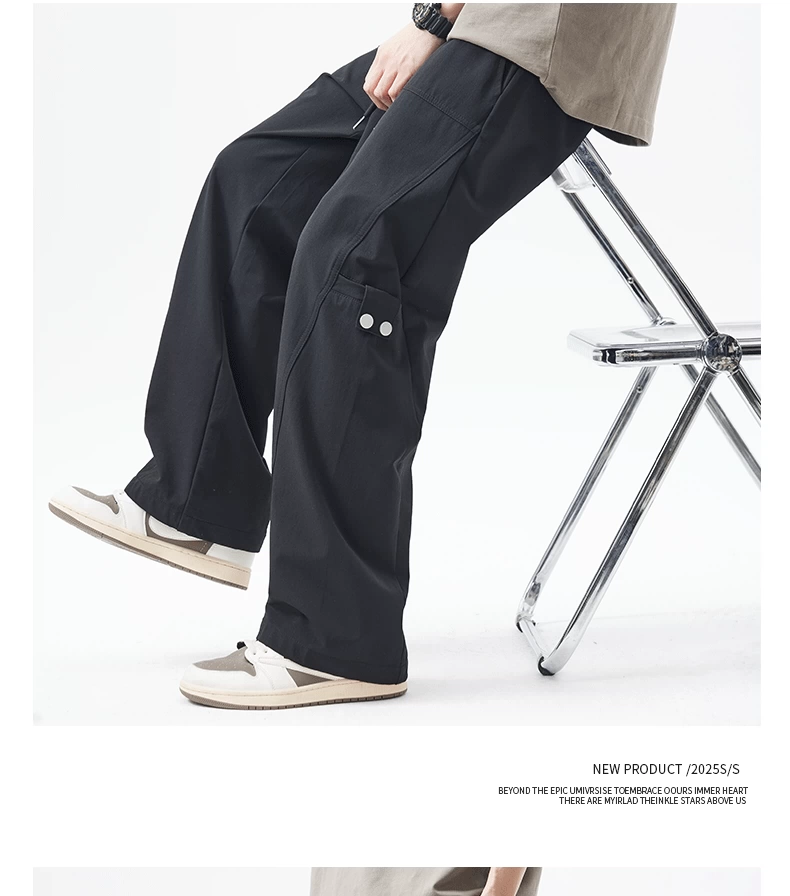 Quần cargo ống thẳng hạng nặng OMZM dành cho nam, quần ống rộng ống thẳng dáng rộng mùa hè, quần lính dù thể thao màu trơn kiểu Mỹ
