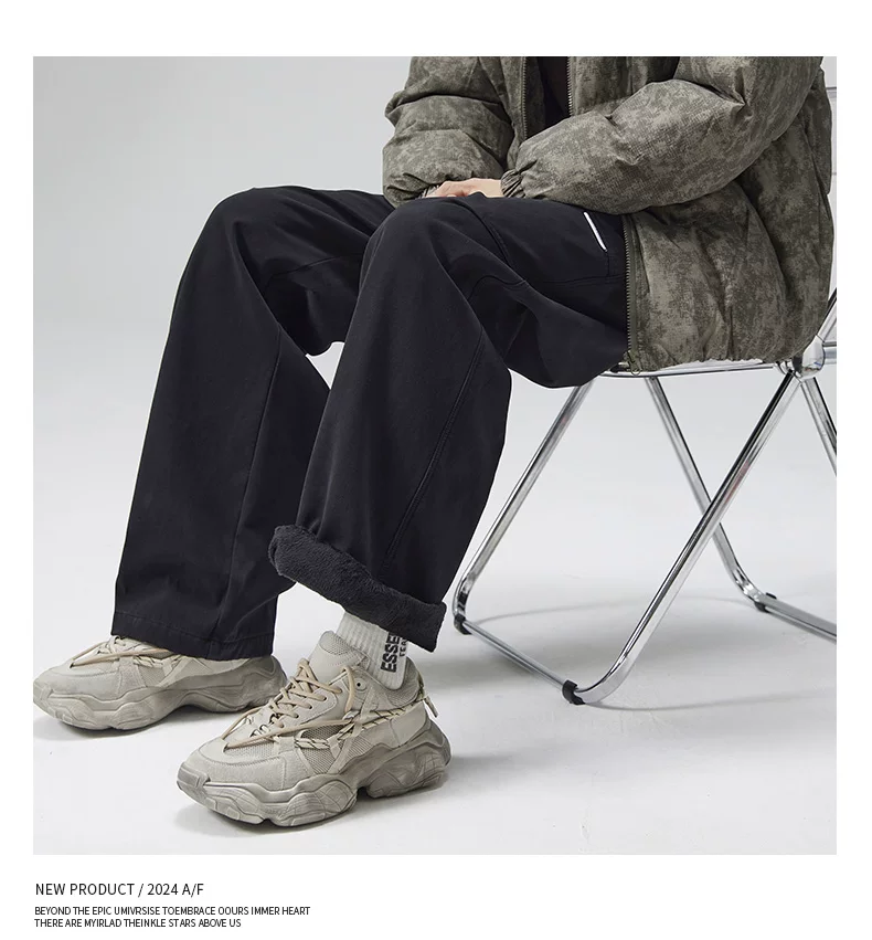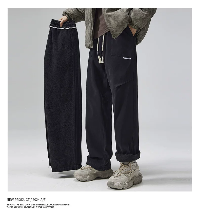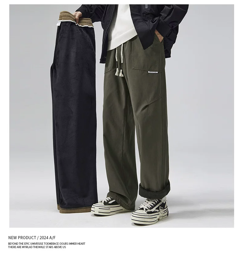 - Quần cargo ống thẳng lót lông cừu hạng nặng OMZM dành cho nam, quần dài dày dặn ấm áp mùa thu đông mới, quần thường ngày mát mẻ và sành điệu dành cho thanh thiếu niên.