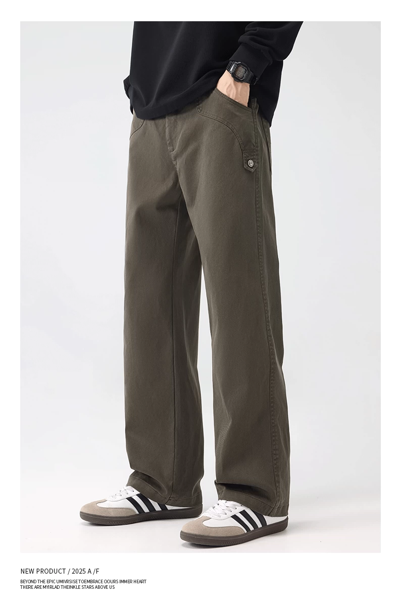 - Quần cargo ống thẳng lót lông cừu kiểu Mỹ của OMZM dành cho nam, quần dài lyocell mùa thu đông, quần thể thao rộng rãi, thoải mái.