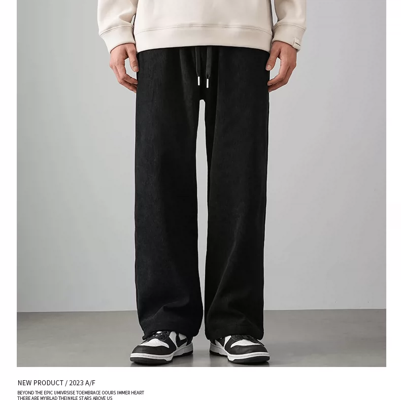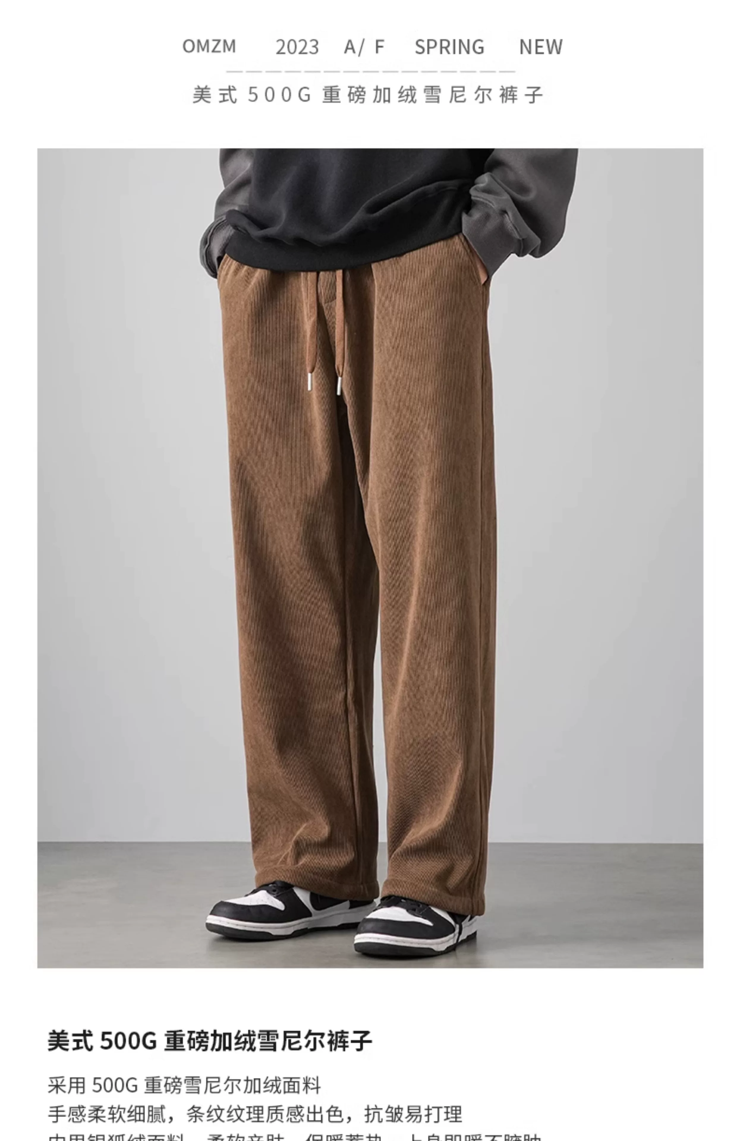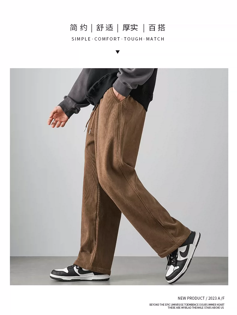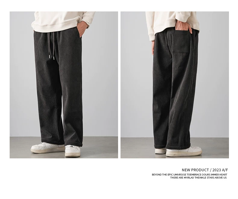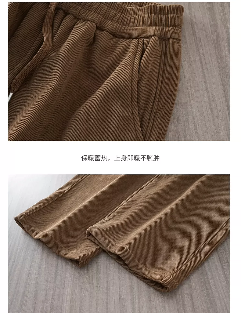 - Quần chenille hạng nặng OMZM500G dành cho nam, quần dài ống rộng dáng rộng phong cách retro mùa thu đông có lót lông cừu