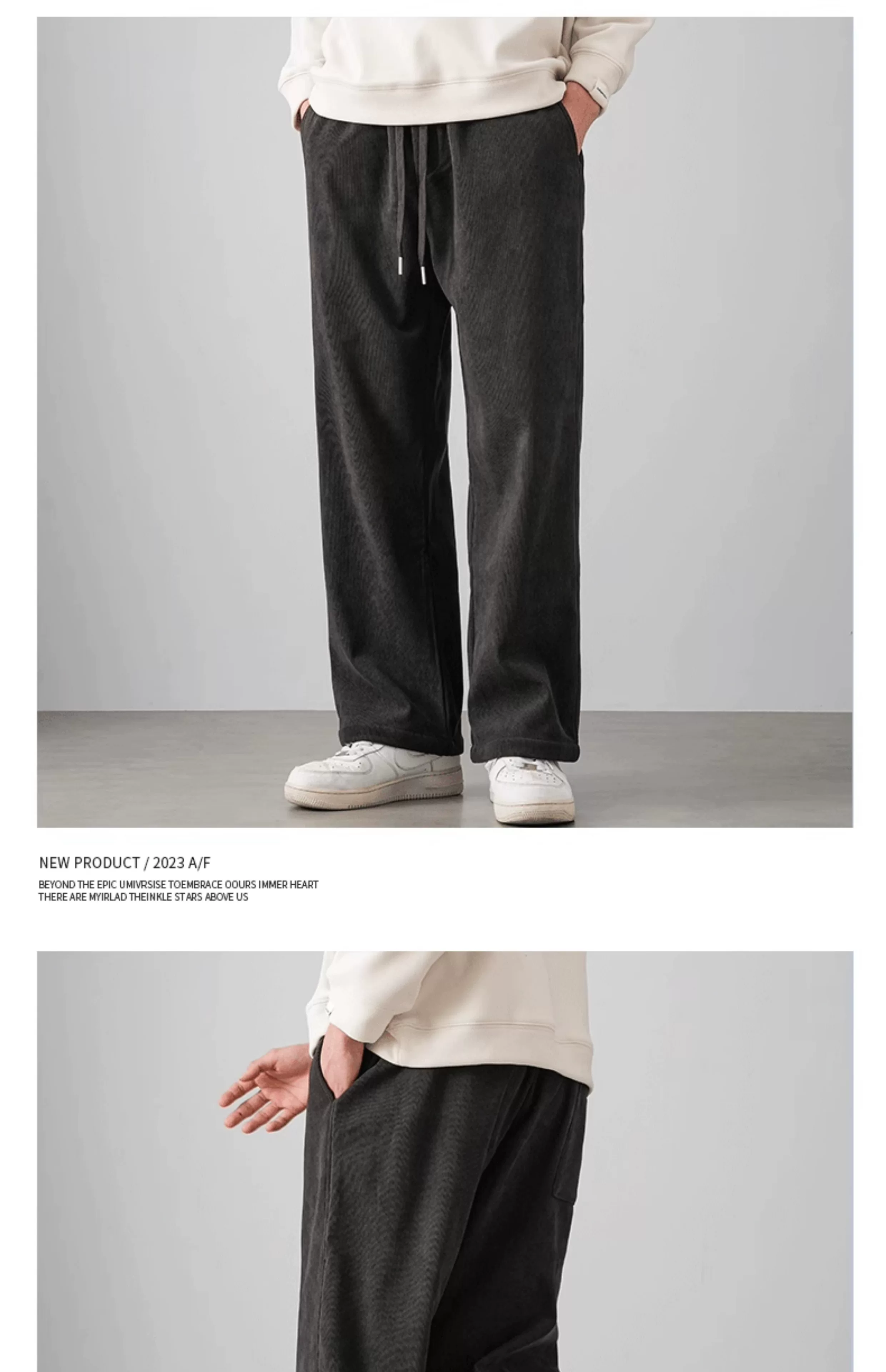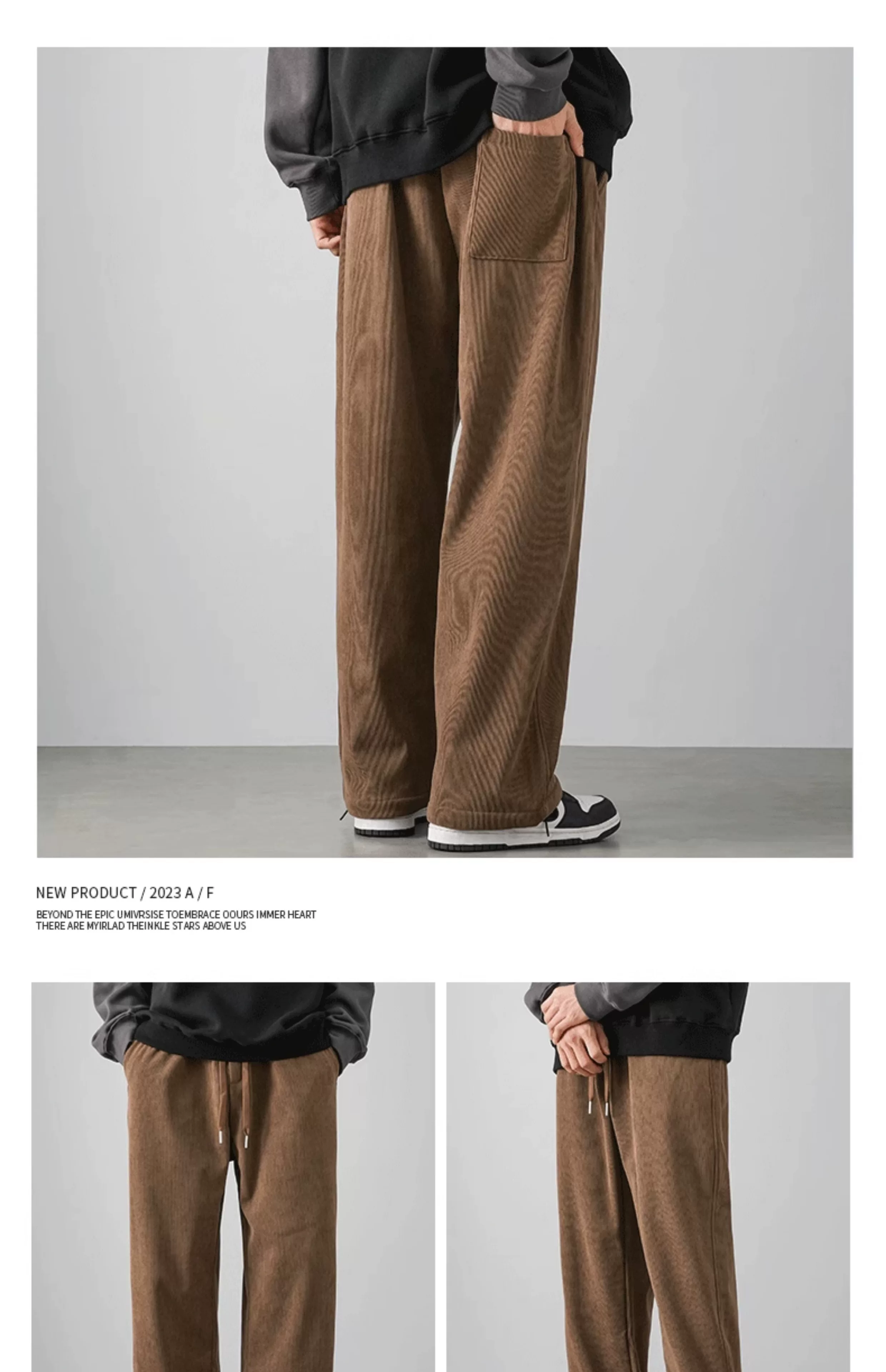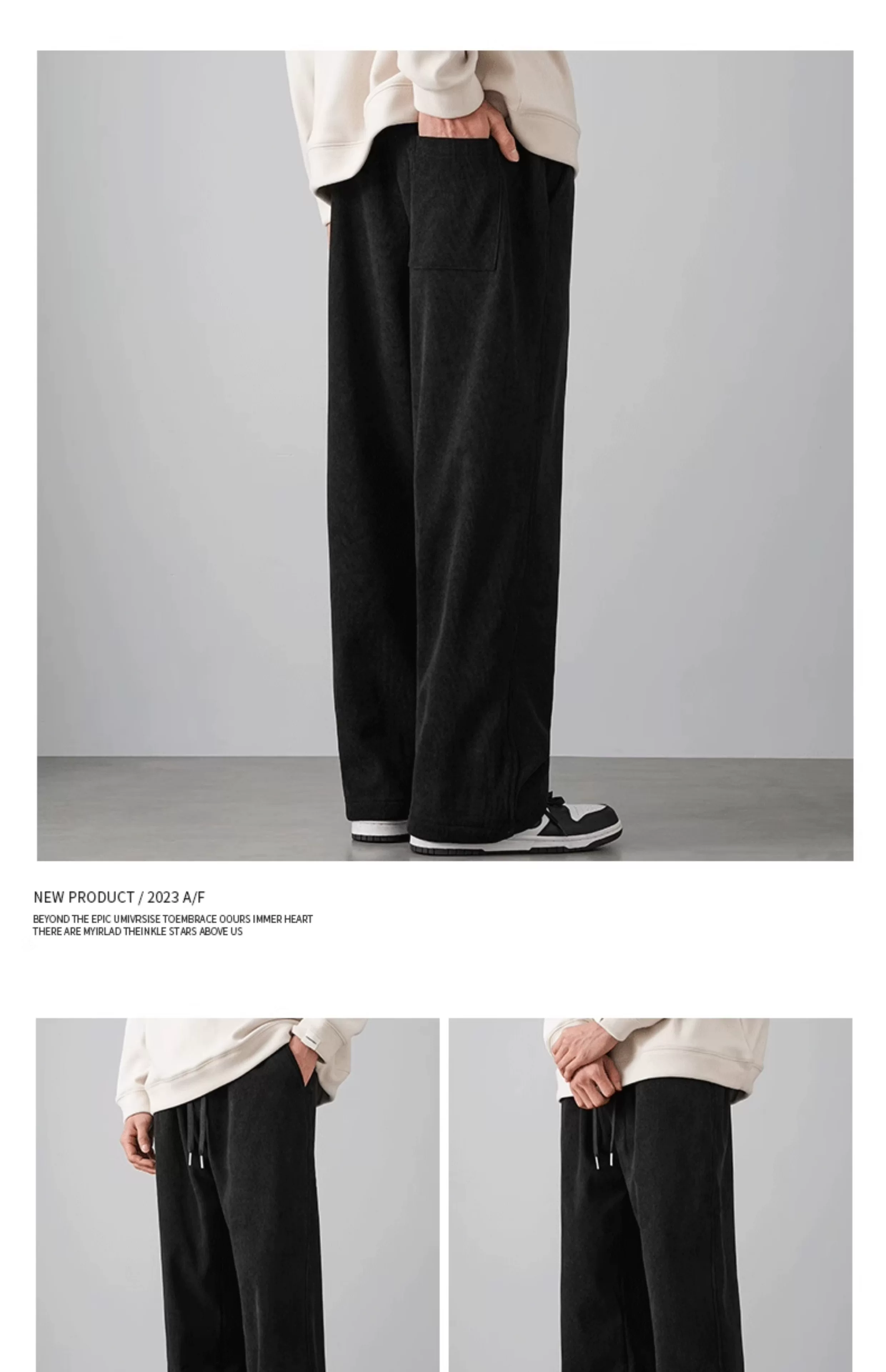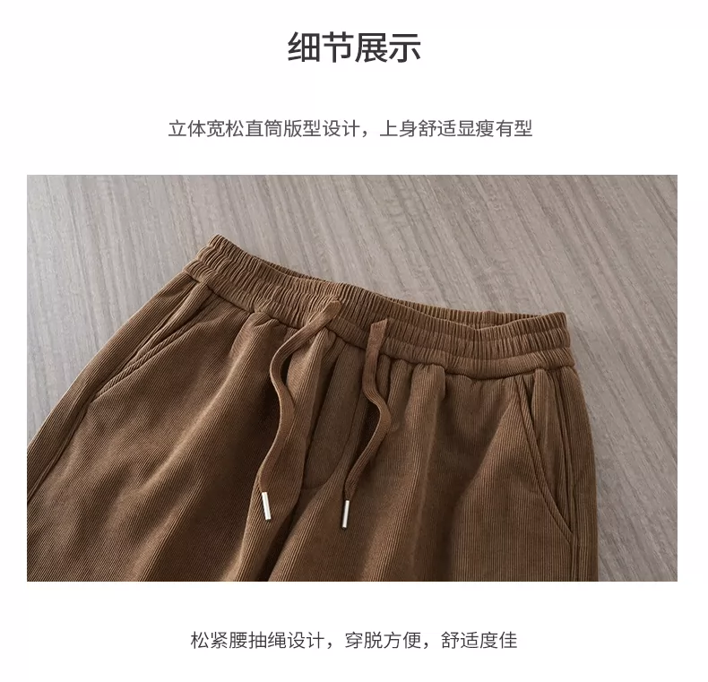 - Quần chenille hạng nặng OMZM500G dành cho nam, quần dài ống rộng dáng rộng phong cách retro mùa thu đông có lót lông cừu