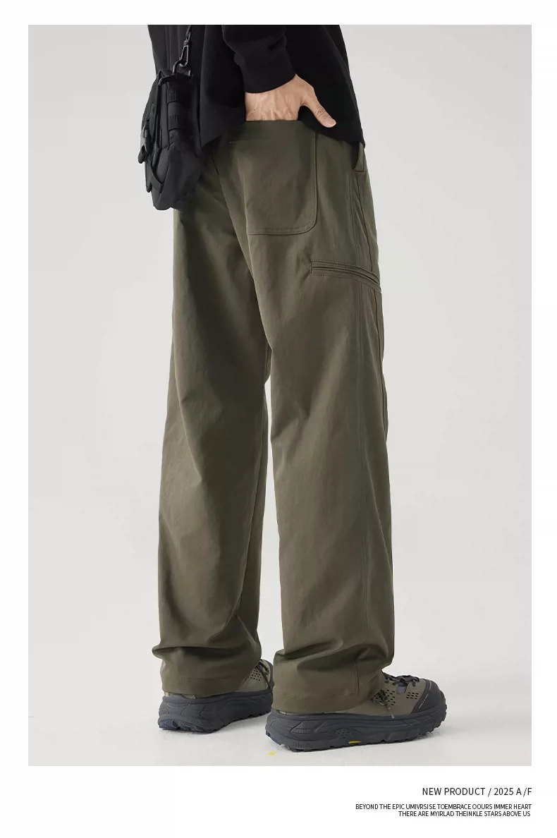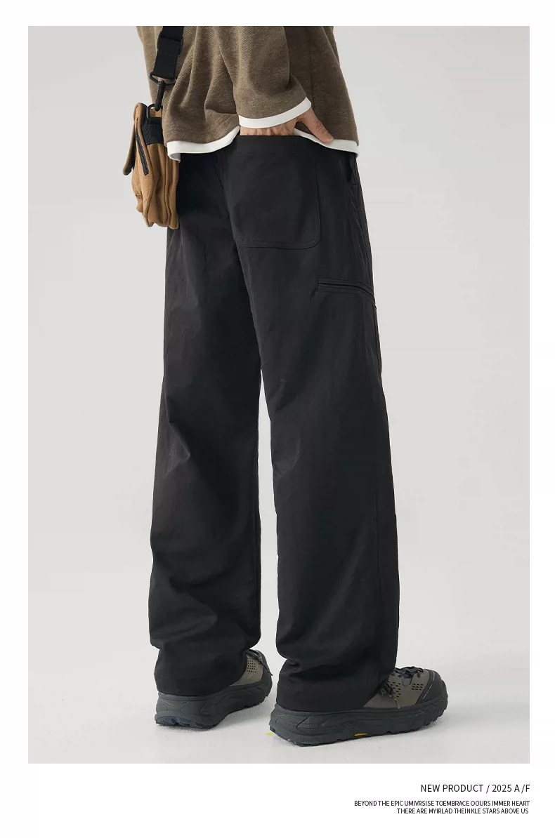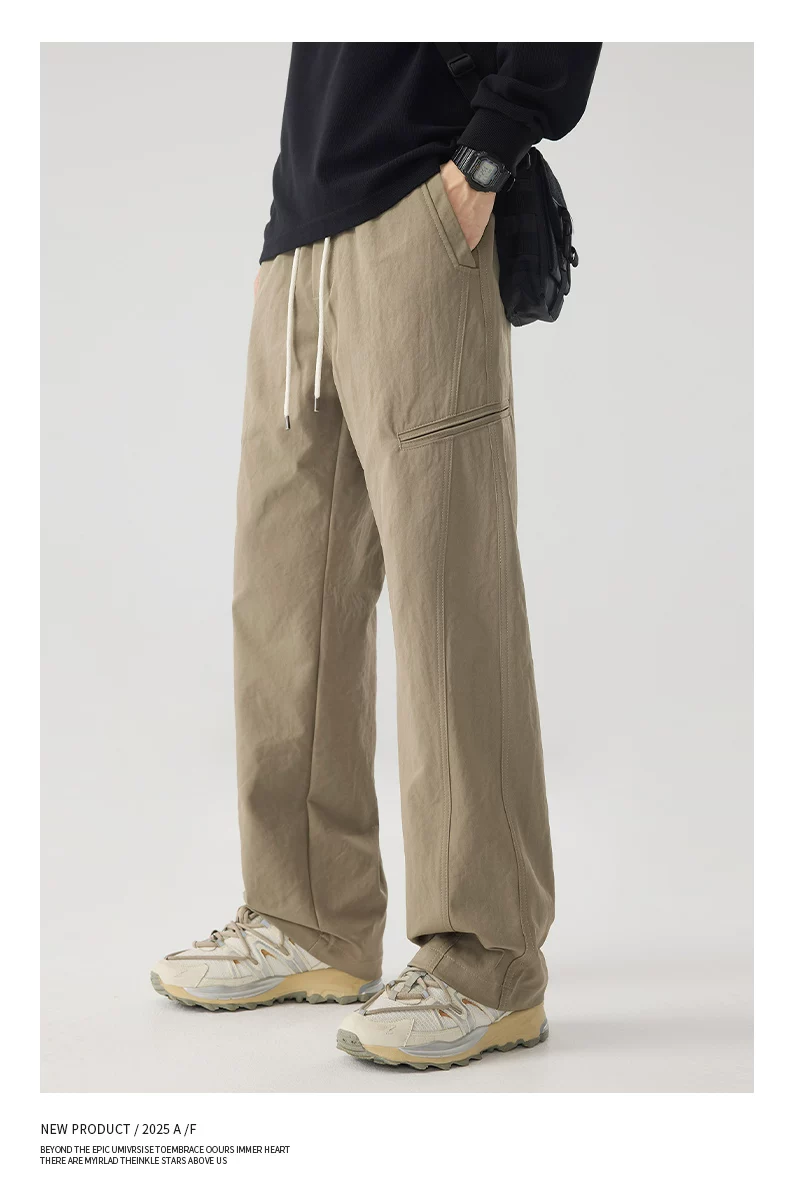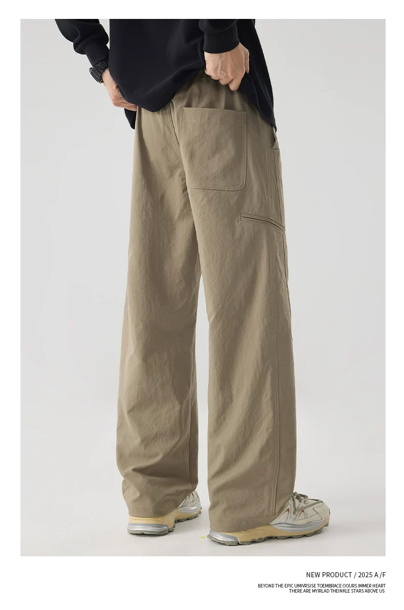 - Quần công sở hạng nặng OMZM dành cho nam, quần kaki ống rộng dáng rộng phong cách Mỹ mùa thu có hiệu ứng xếp nếp.