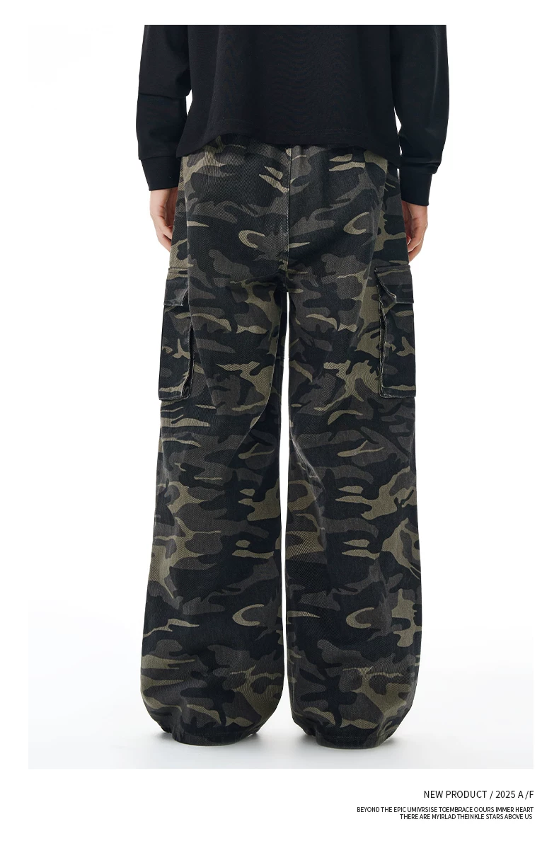 - Quần dài ngụy trang kiểu Mỹ OMZM dành cho nam, quần ống rộng thẳng kiểu quân đội cổ điển mùa đông, quần ống rộng dài chấm sàn kiểu chắp vá