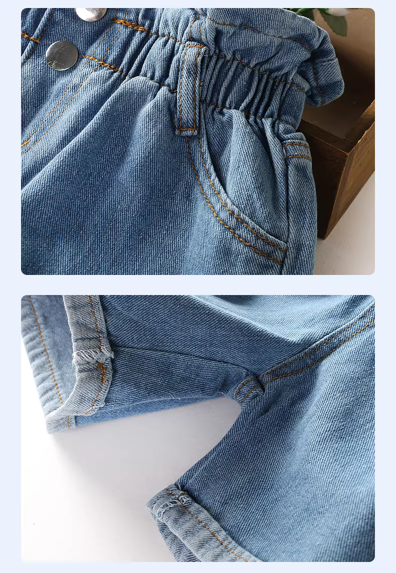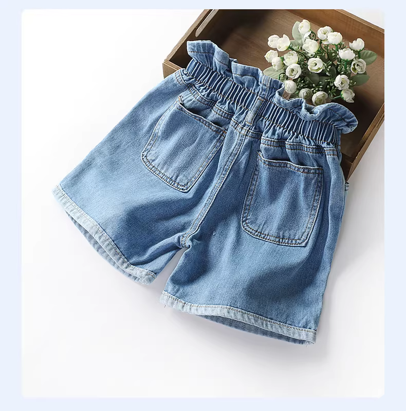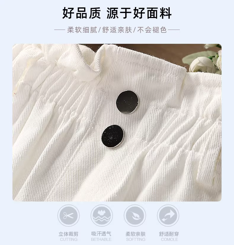 - Quần đùi nữ, kiểu dáng mỏng mùa hè, kiểu dáng rộng rãi mới năm 2025, quần jean nữ lớn, quần trắng trẻ em, quần mặc mùa hè đi chơi ngoài trời.
