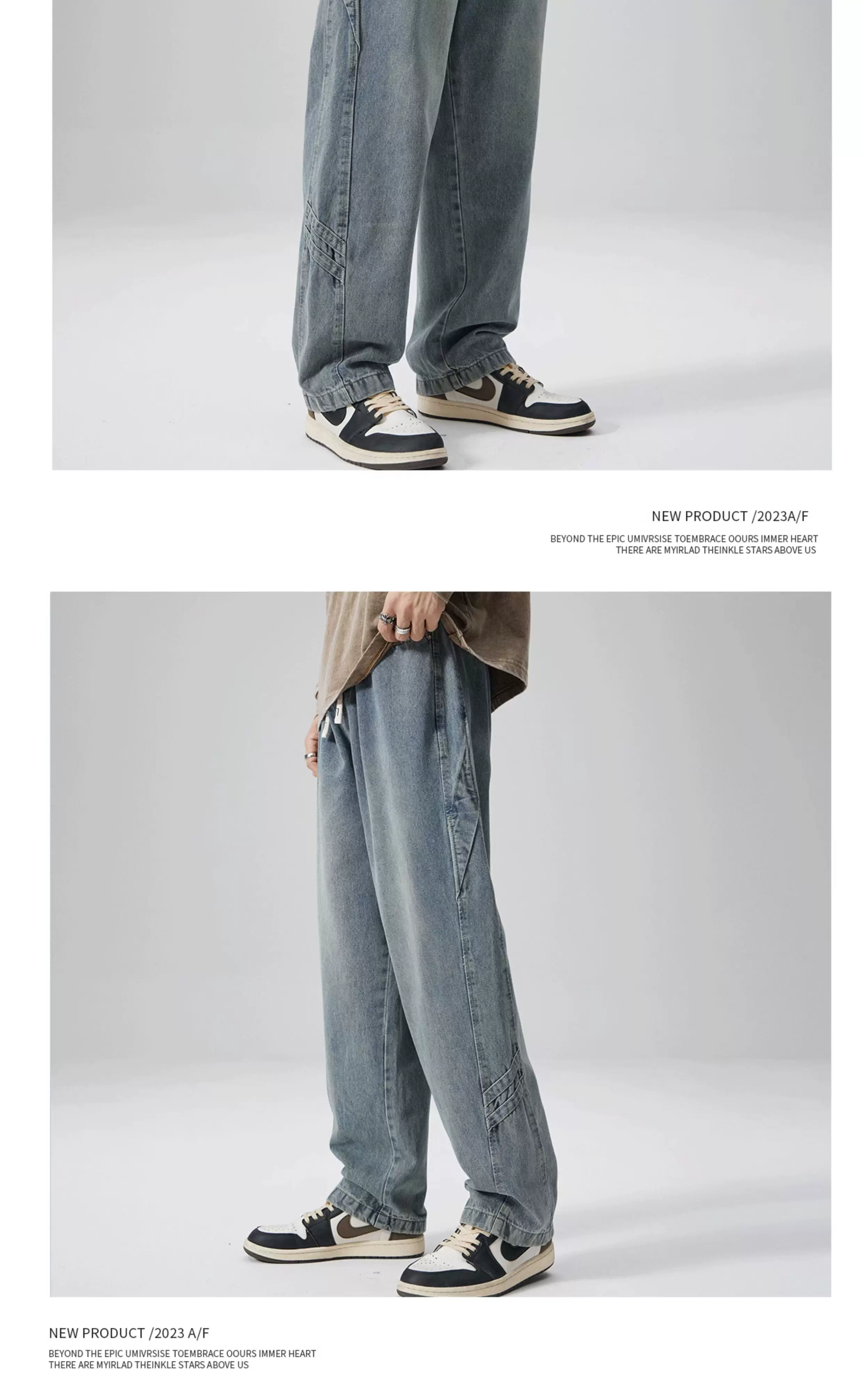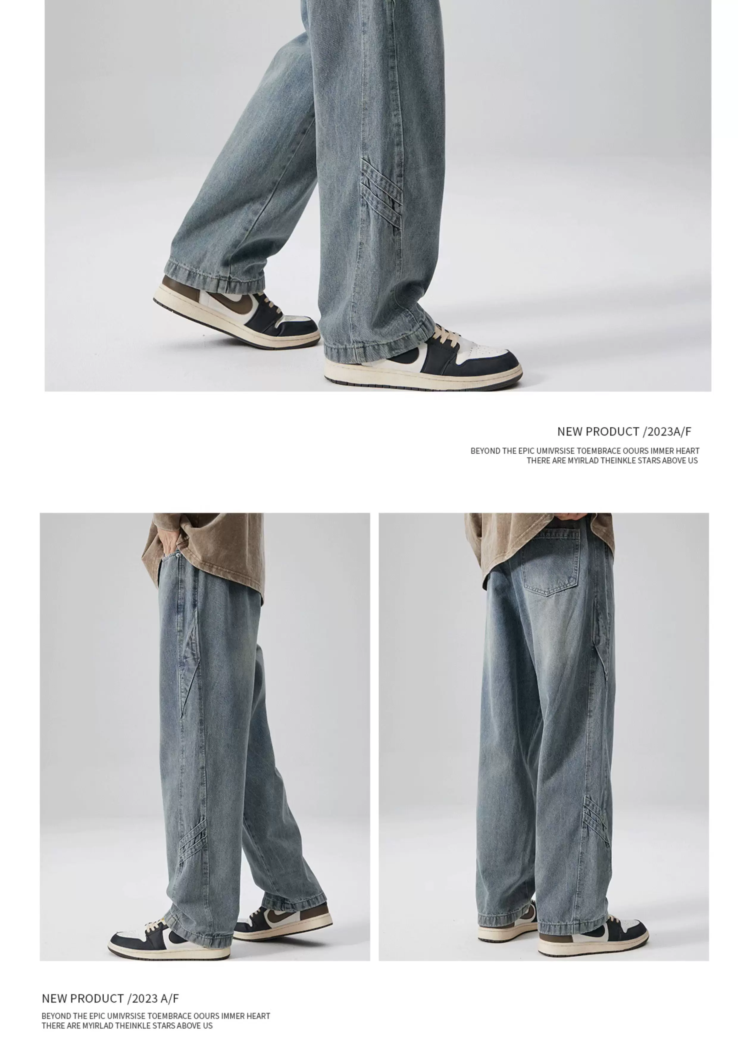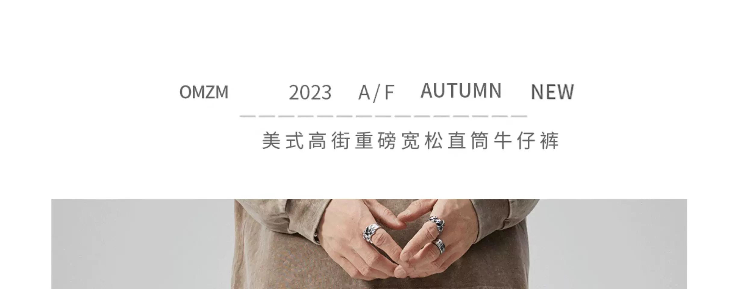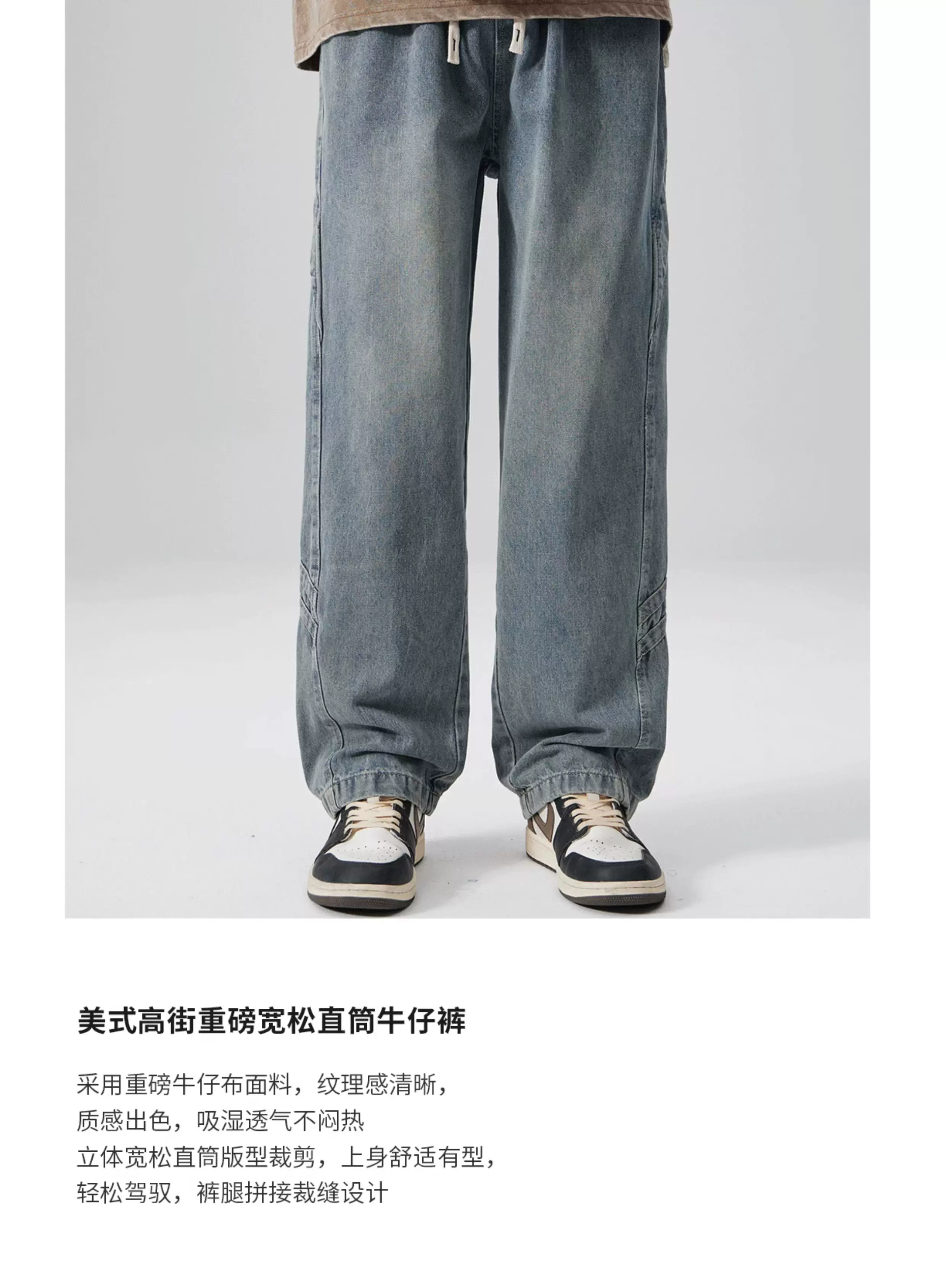 - Quần jean cổ điển giặt kiểu Mỹ của OMZM dành cho nam, quần dài ống thẳng dáng rộng mùa xuân thu, quần công sở chắp vá hợp thời trang
