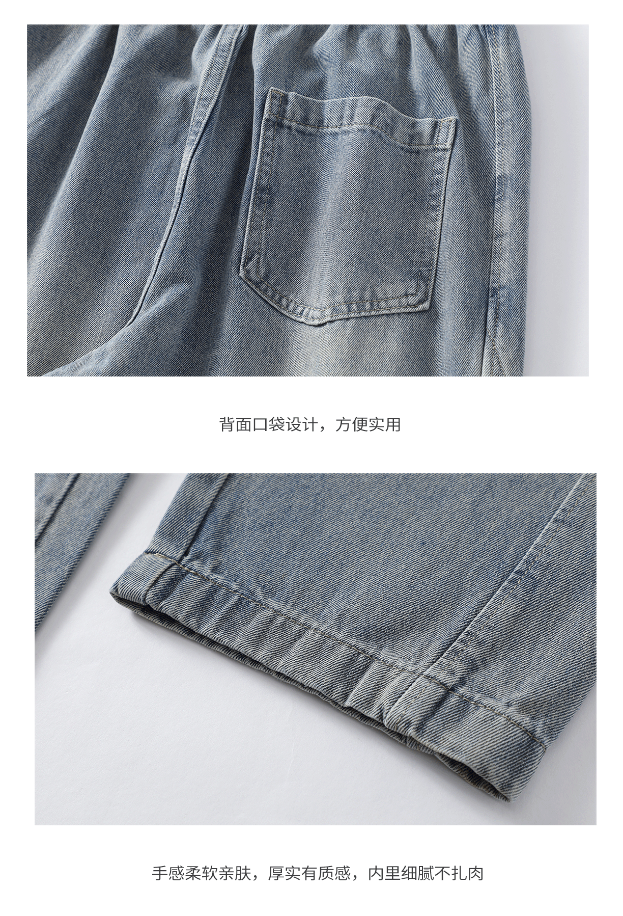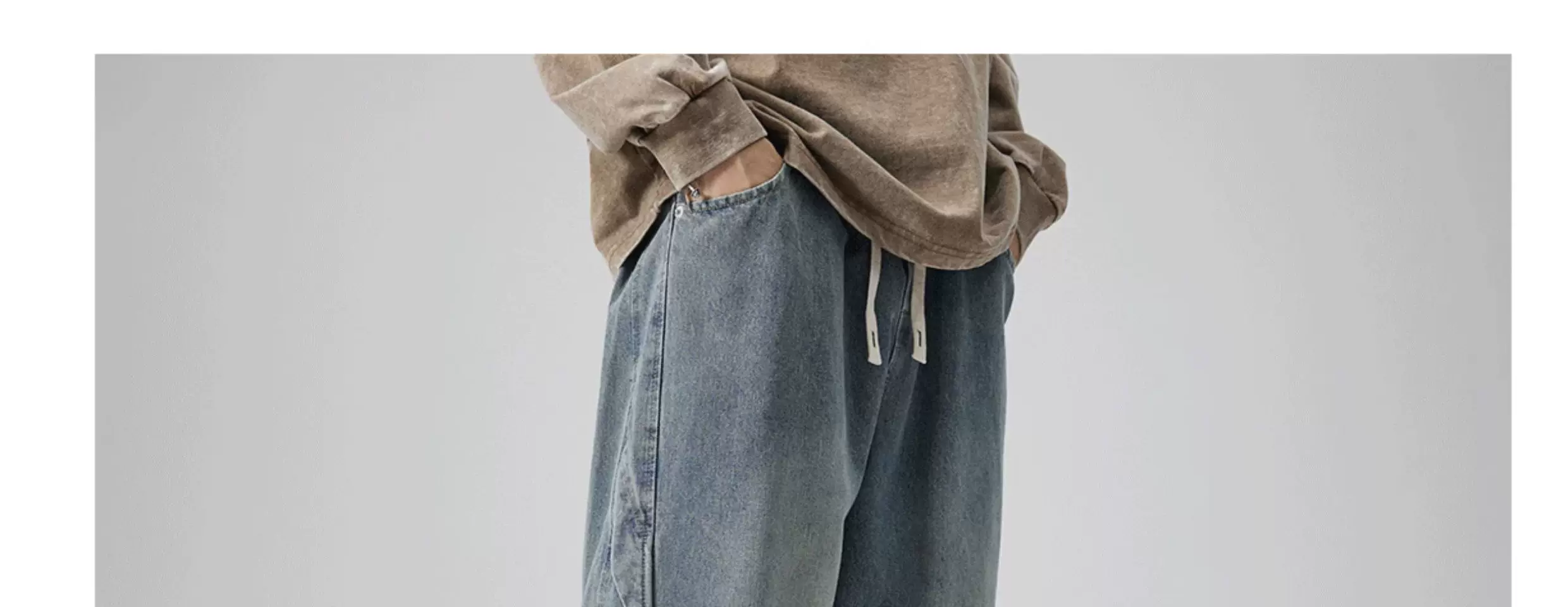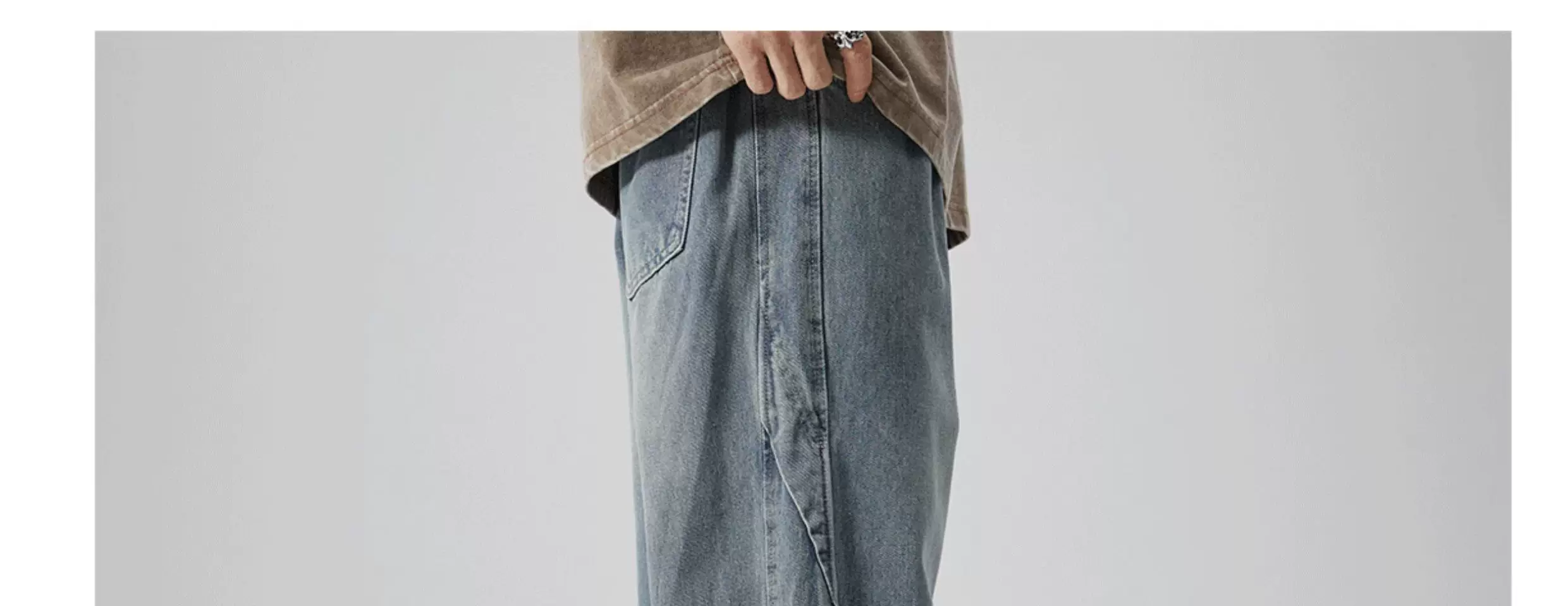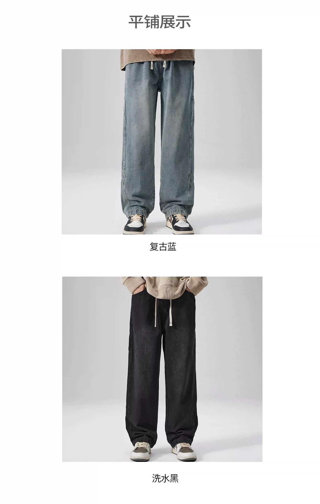 - Quần jean cổ điển giặt kiểu Mỹ của OMZM dành cho nam, quần dài ống thẳng dáng rộng mùa xuân thu, quần công sở chắp vá hợp thời trang