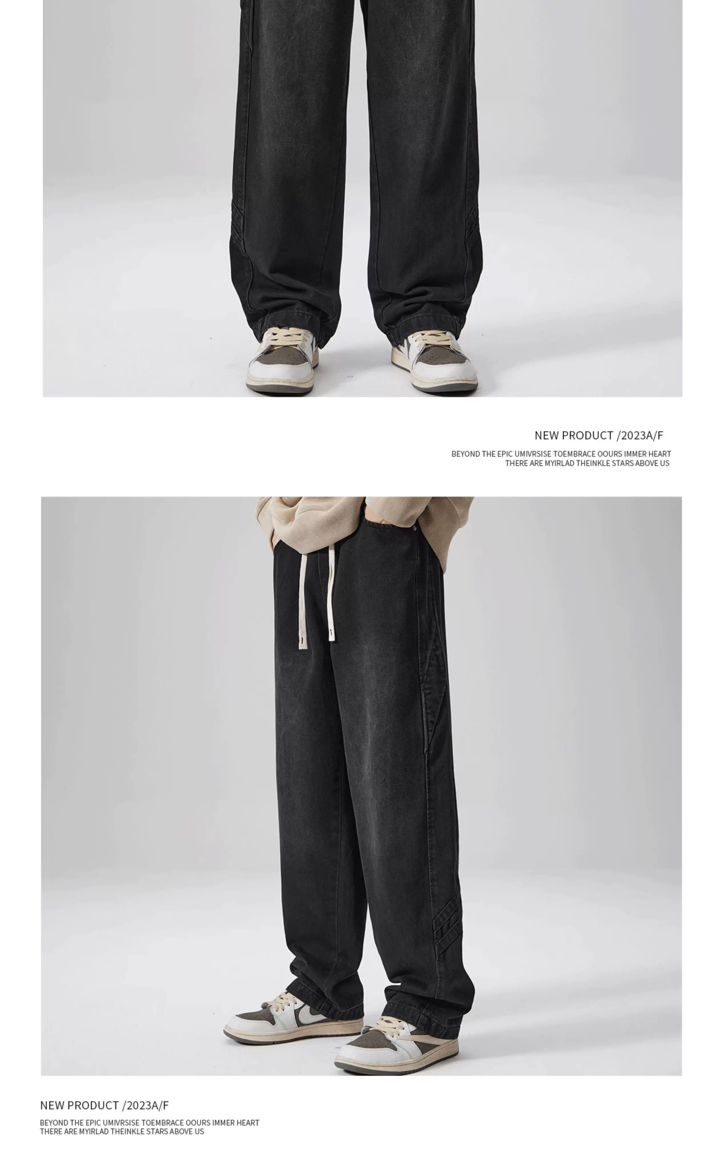 Quần jean cổ điển giặt kiểu Mỹ của OMZM dành cho nam, quần dài ống thẳng dáng rộng mùa xuân thu, quần công sở chắp vá hợp thời trang