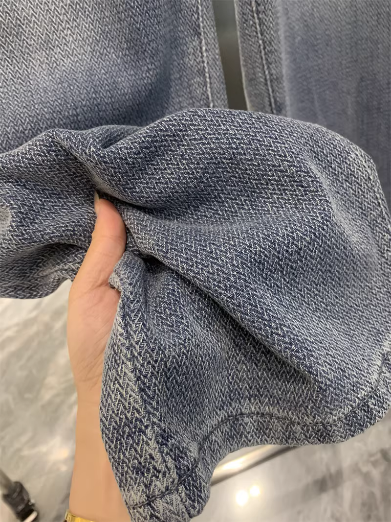 Quần jean dáng thẳng phong cách đường phố, chất liệu jacquard xương cá hai mặt, kiểu Nhật cổ điển đã qua xử lý làm mềm!